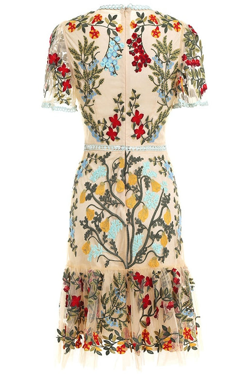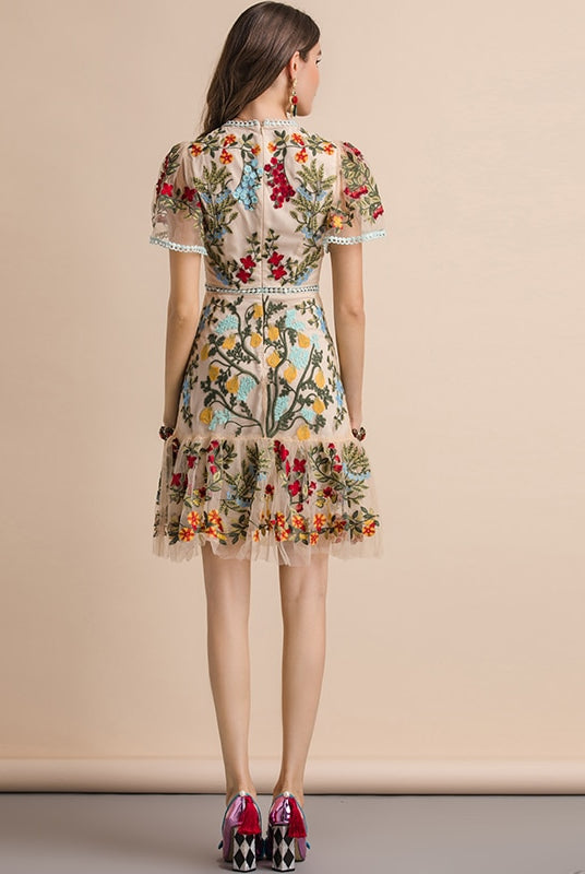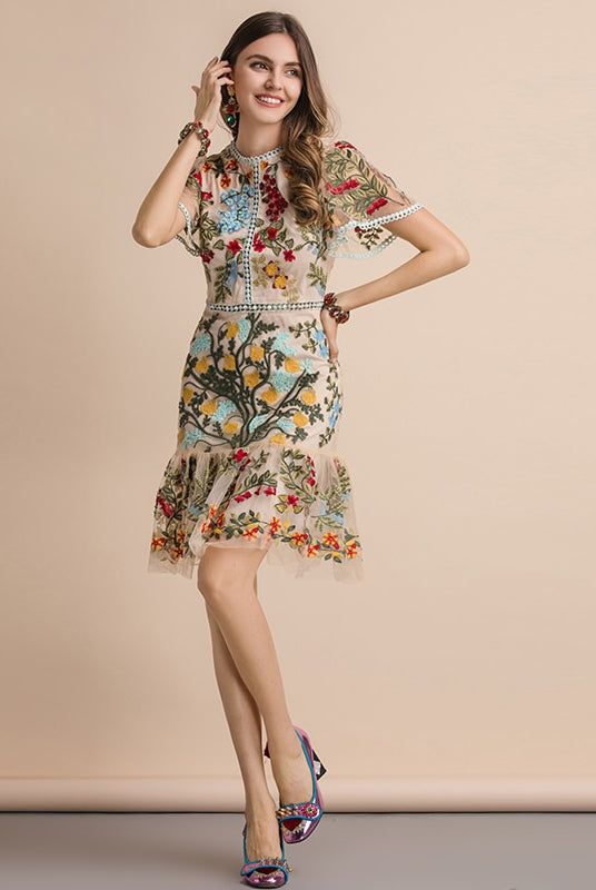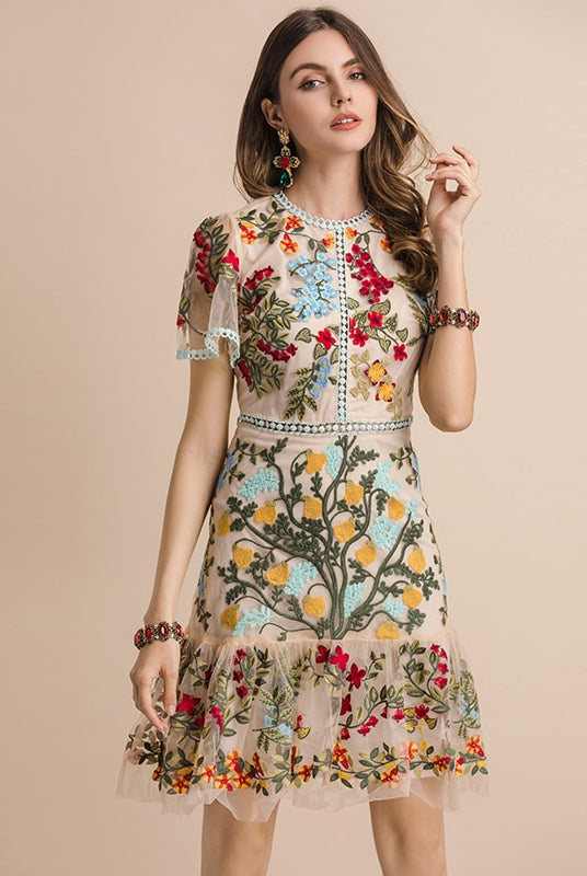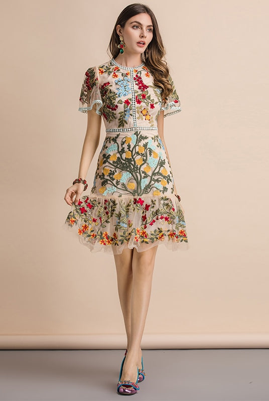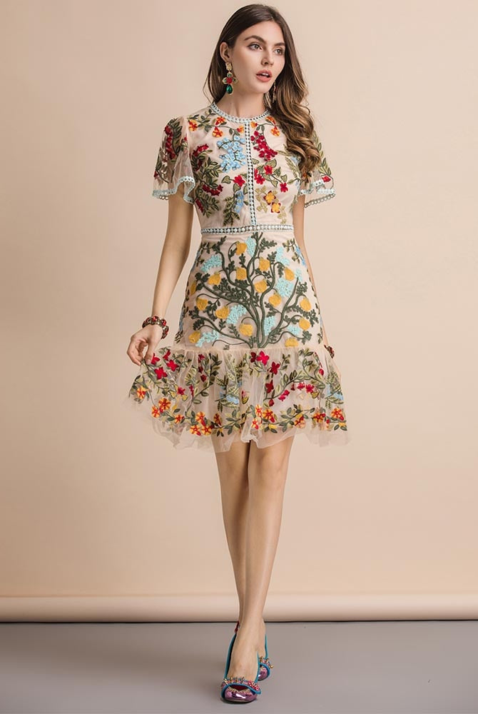 Trend4us Embroidered Floral Flare Mini Dress