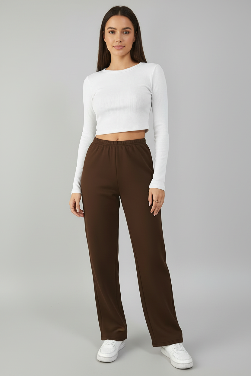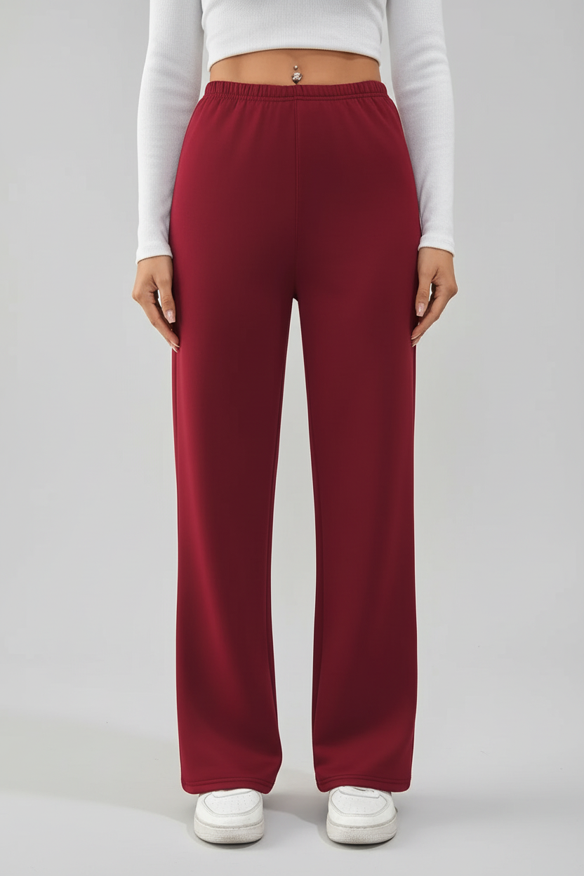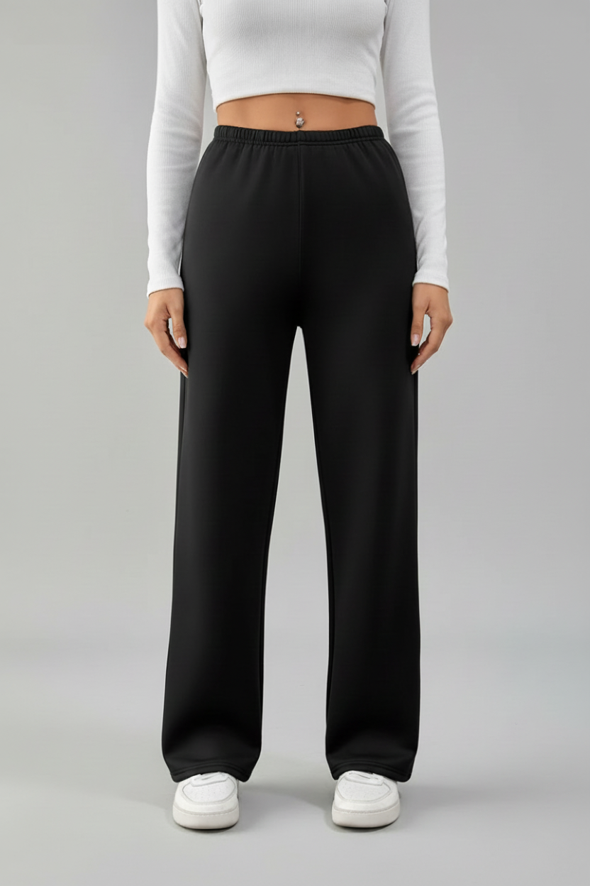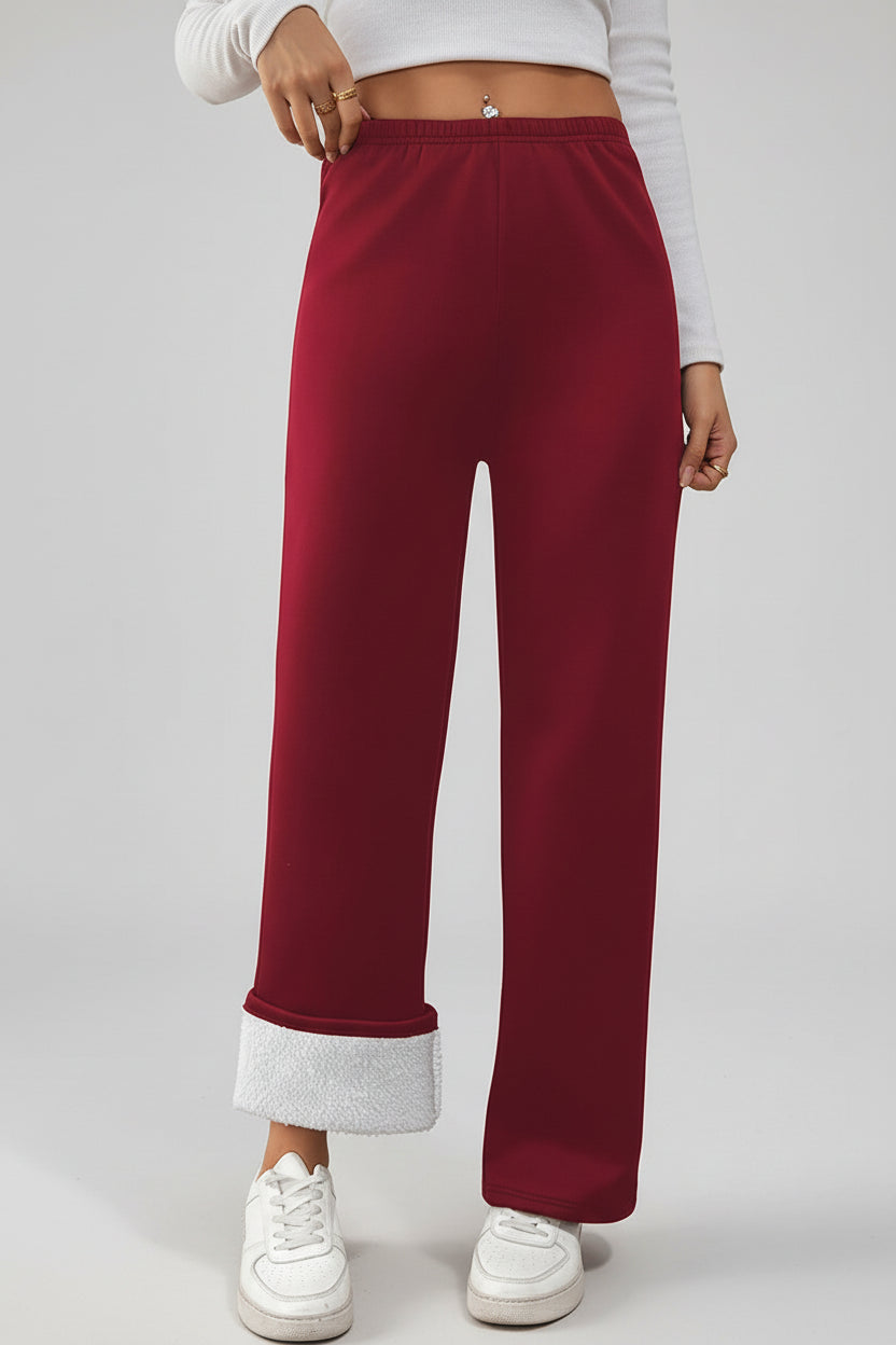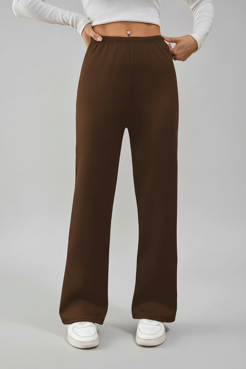 Trend4us Cozy Fleece-Lined High-Waisted Wide-Leg Pants