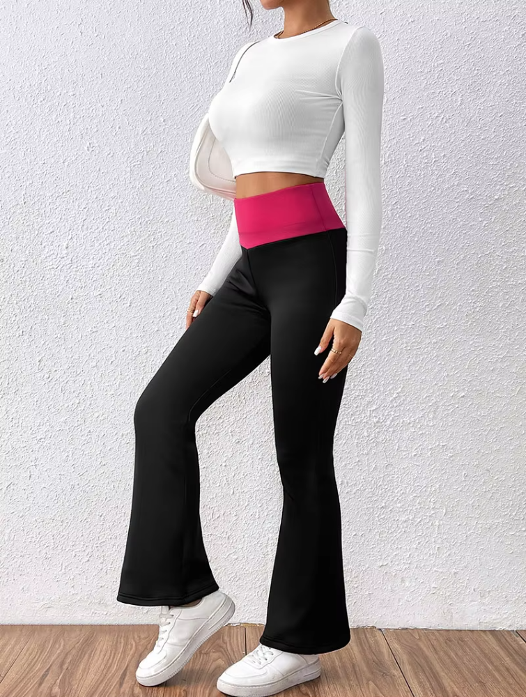Trend4us Colorblock High-Waisted Fleece-Lined Flare Pants