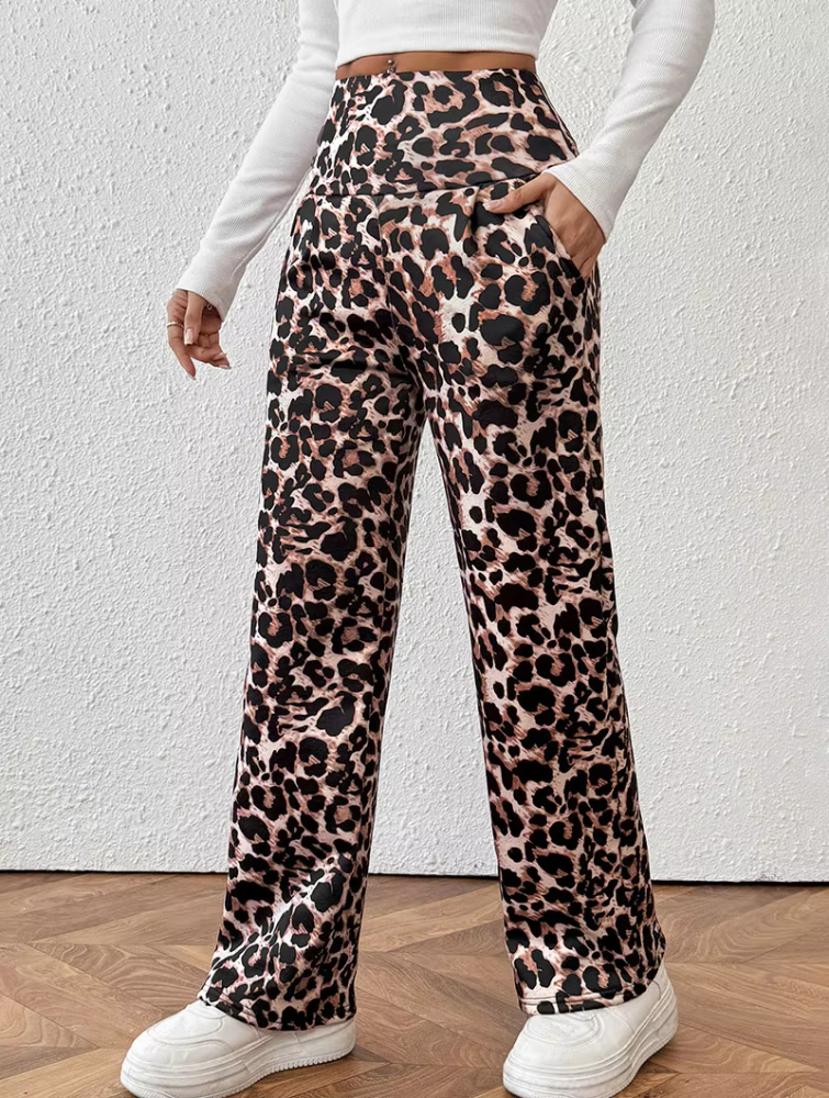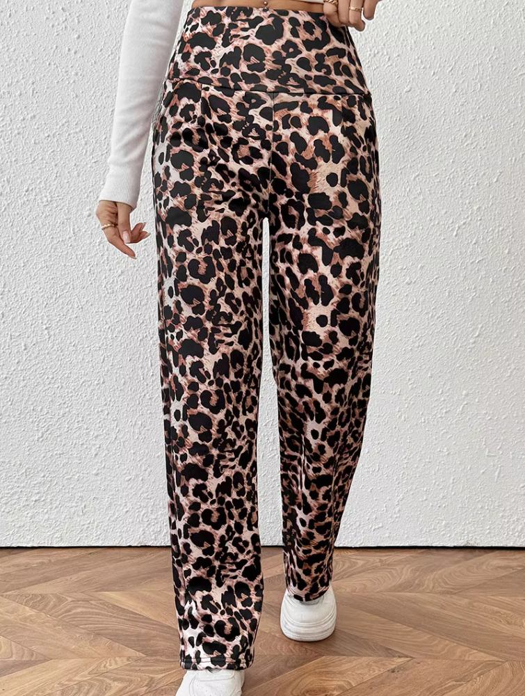 Trend4us Leopard Fleece-Lined High-Waisted Pants