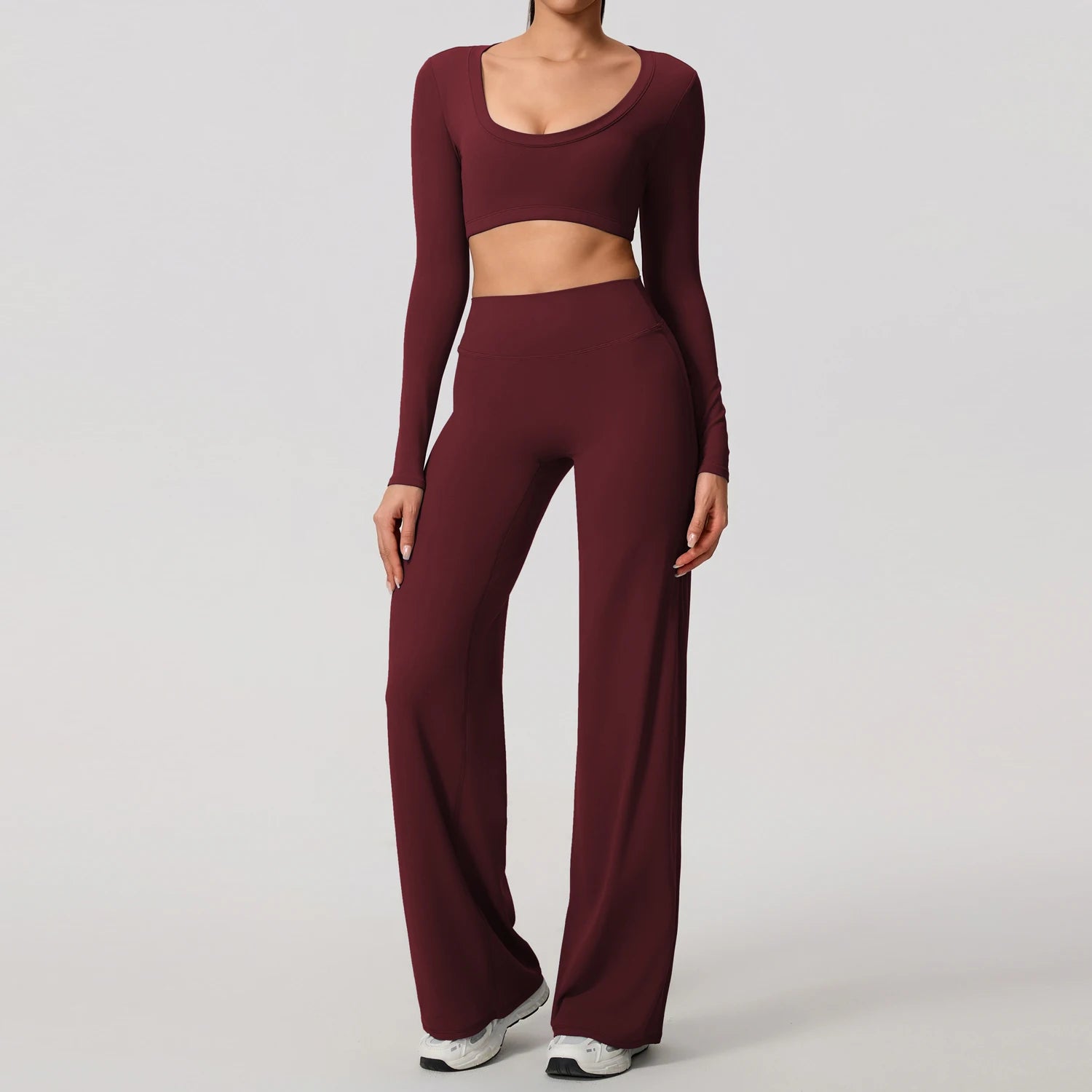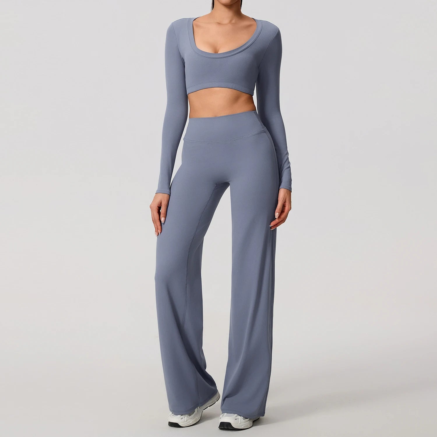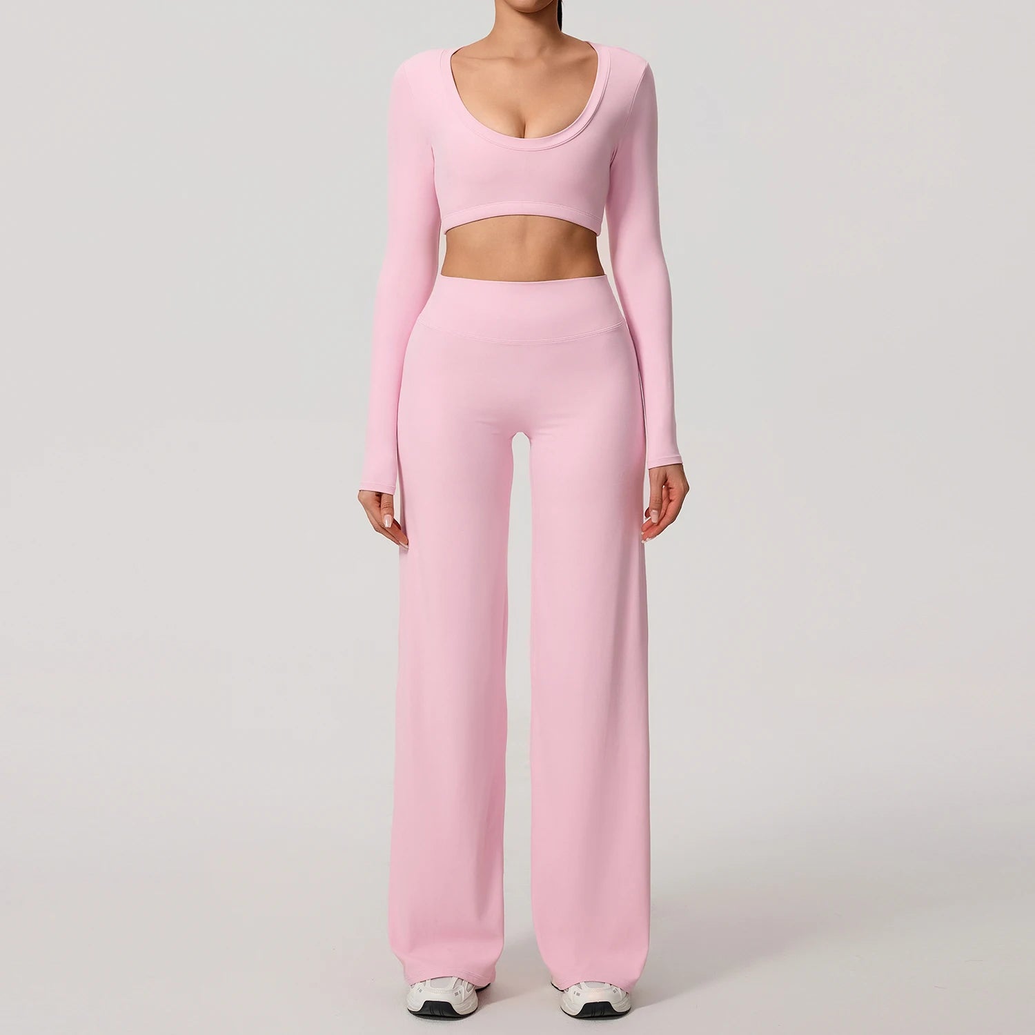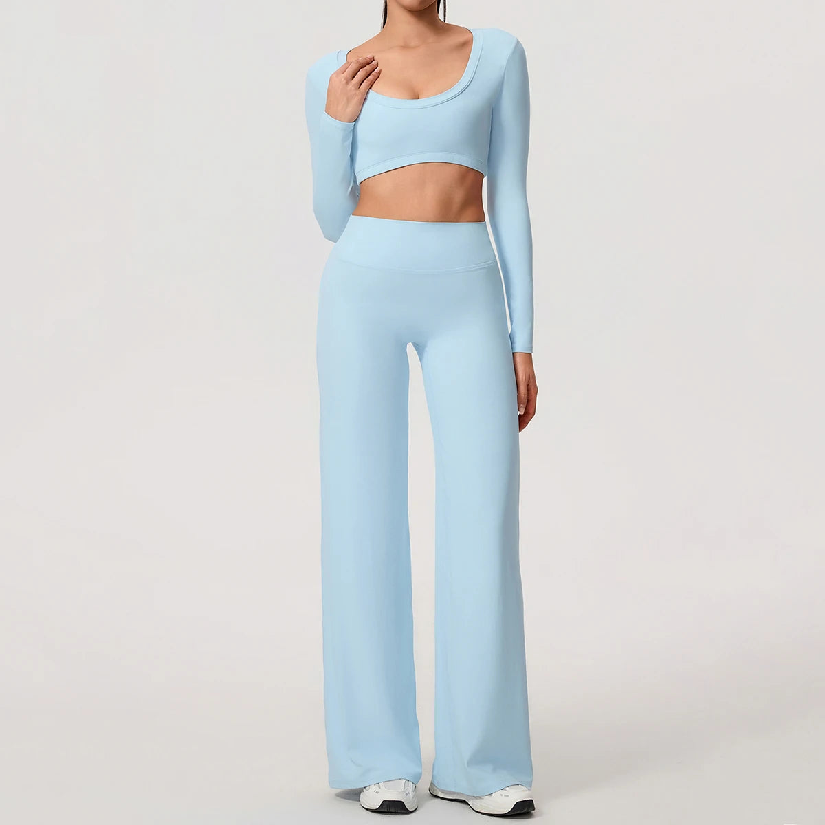 Trend4us Backless Crop Top & Wide-Leg Pants Activewear Set