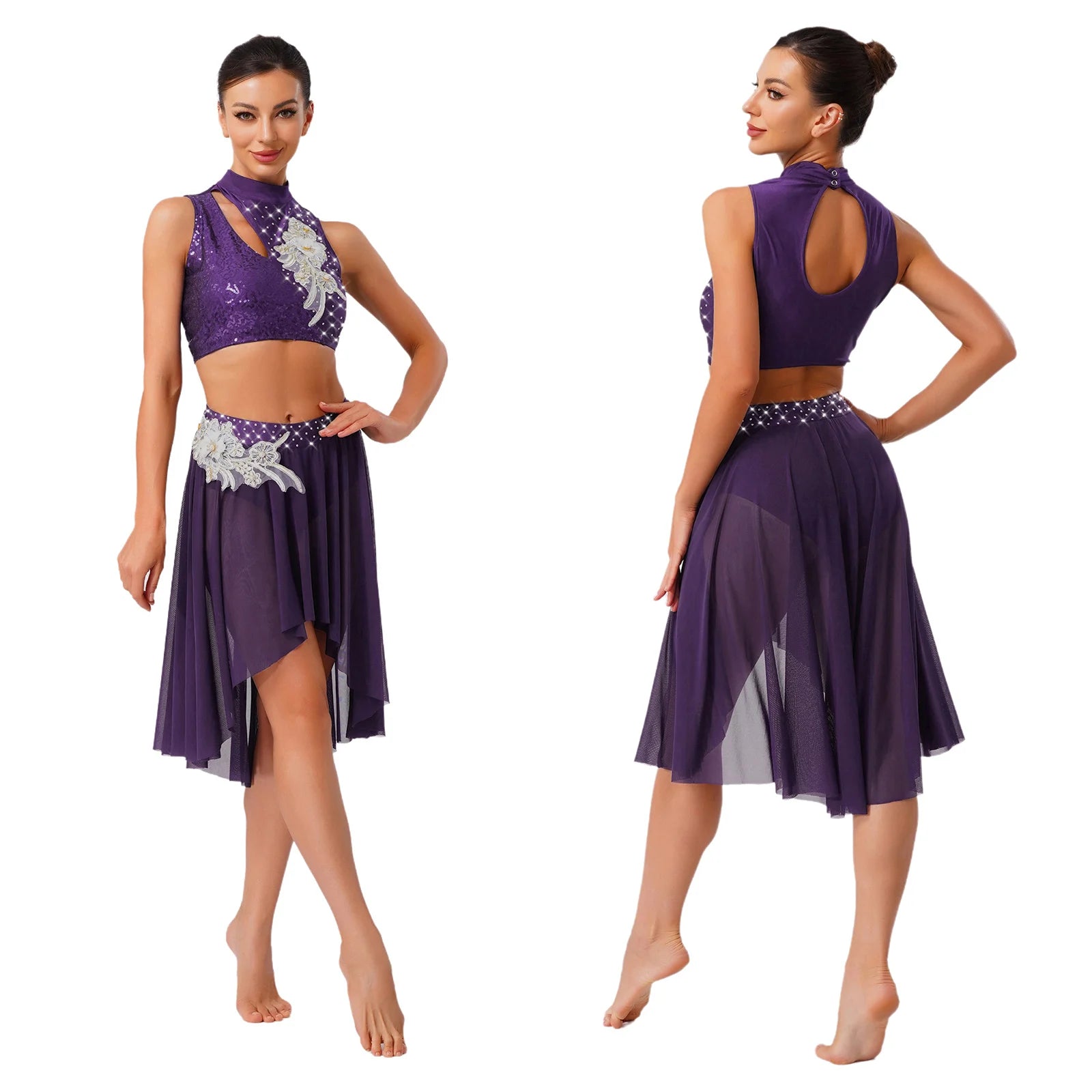 Trend4us Ballet Lyrical Dance & Skating Crop Top & Skirt Set