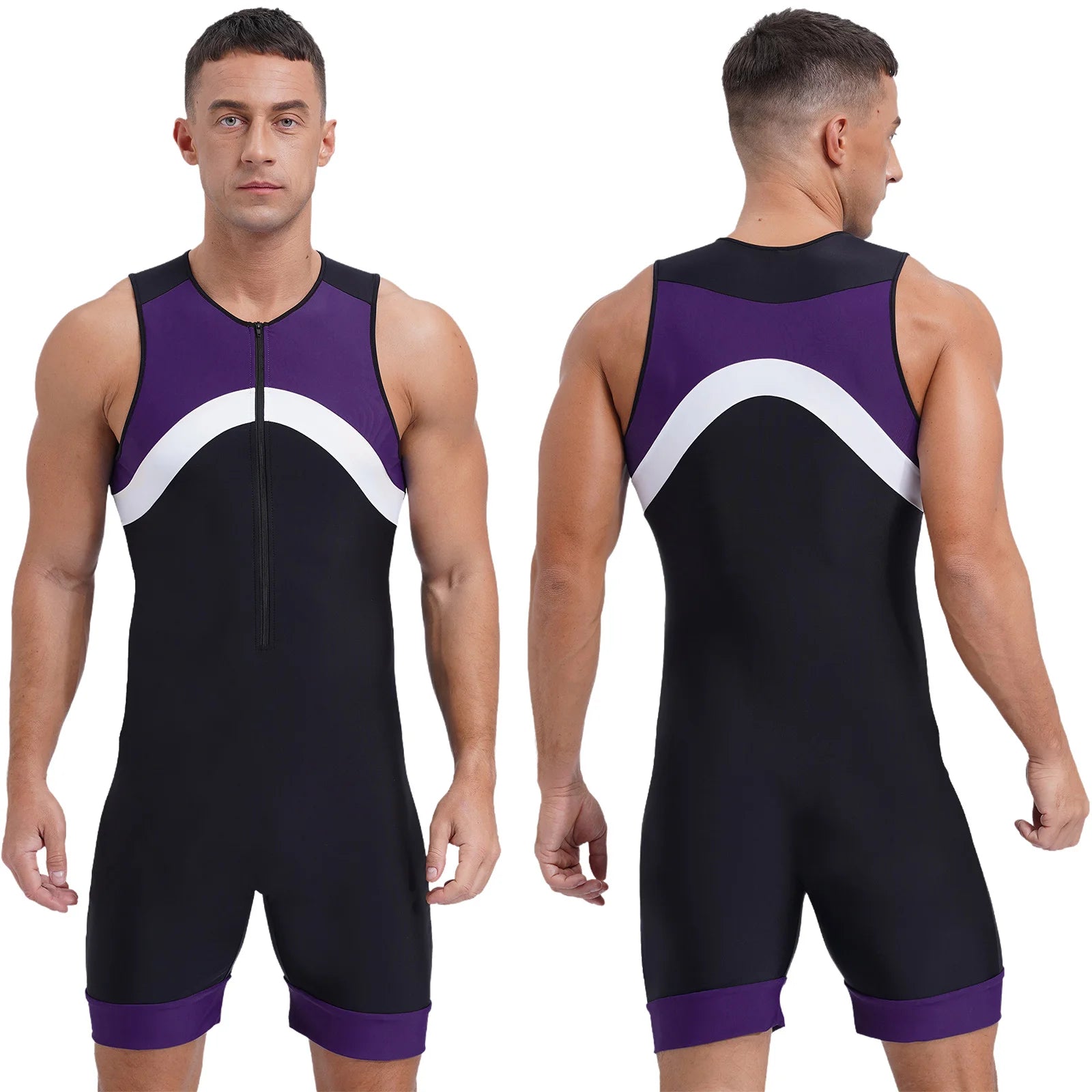 Trend4us Men’s Zip-Front Performance Sports One-Piece Suit