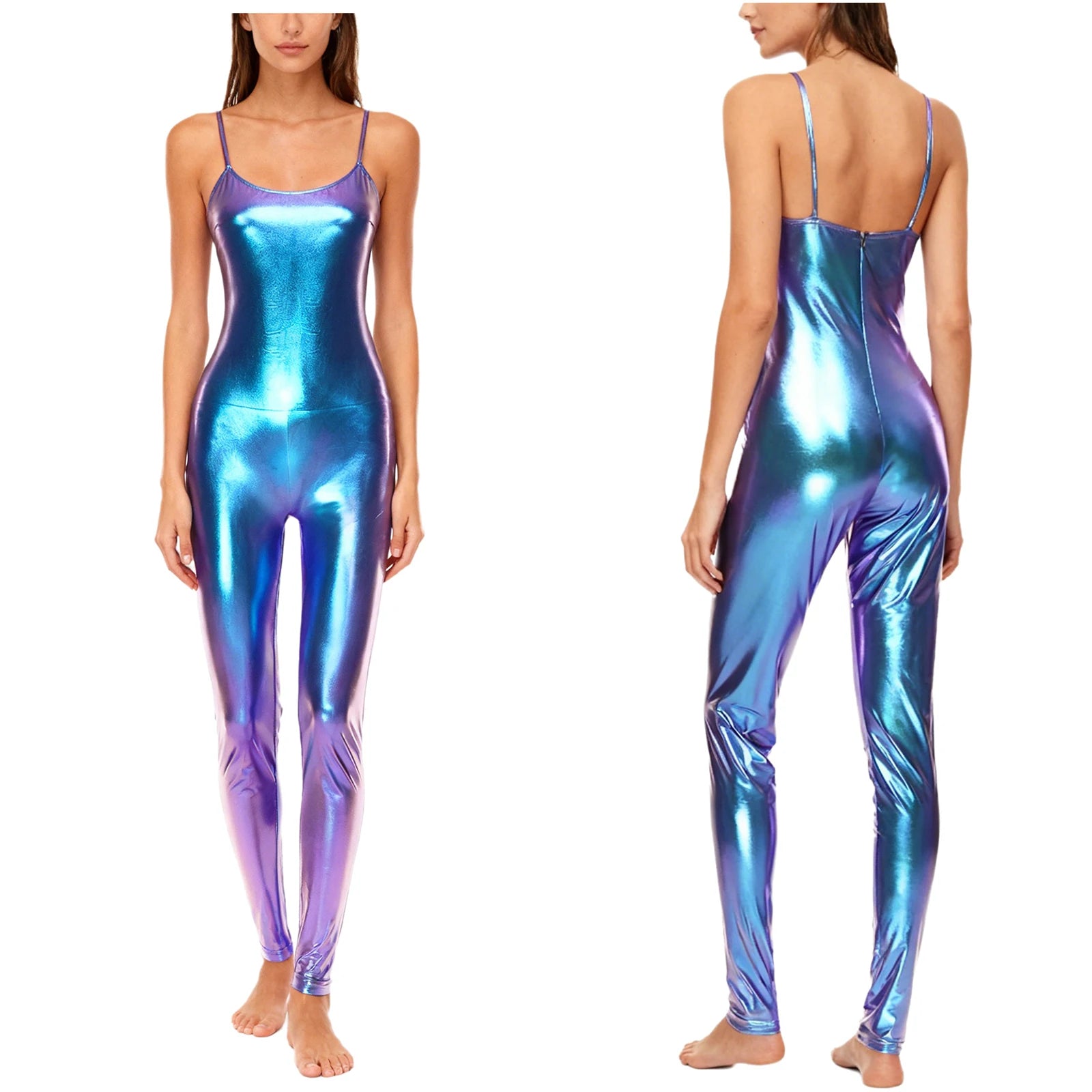 Trend4us Women’s Glossy Metallic Unitard Jumpsuit Catsuit