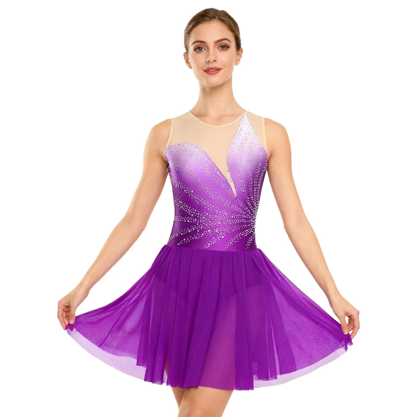 Trend4us Rhinestone Dance Figure Skating Performance Dress