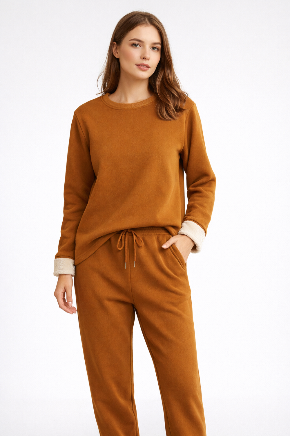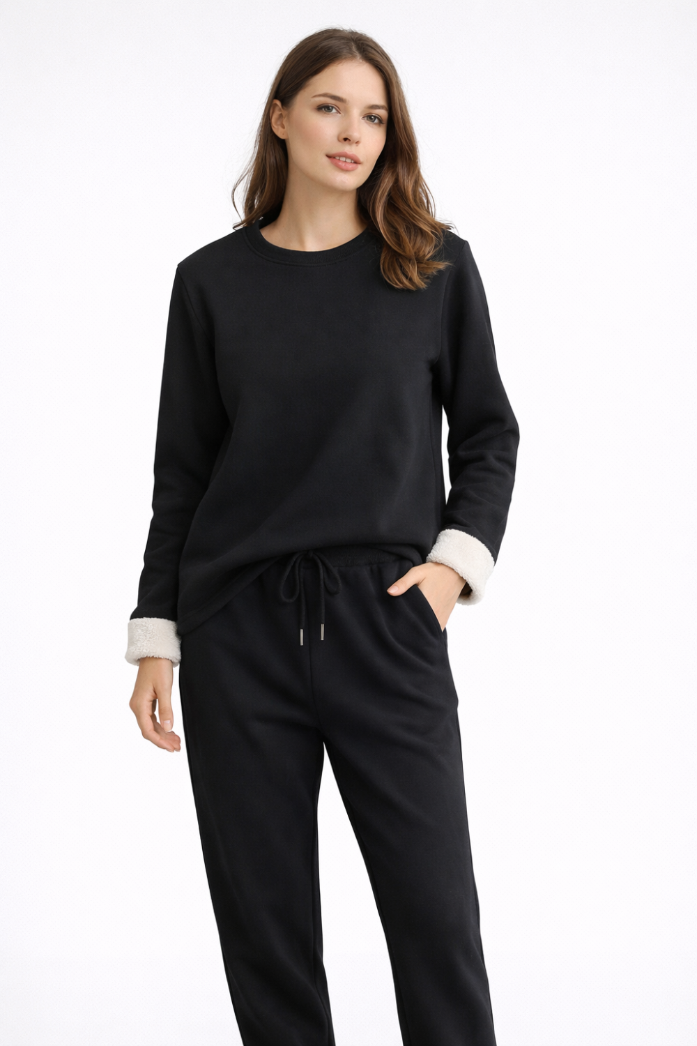 Trend4us Cozy Fleece-Lined Lounge Top & Jogger Set