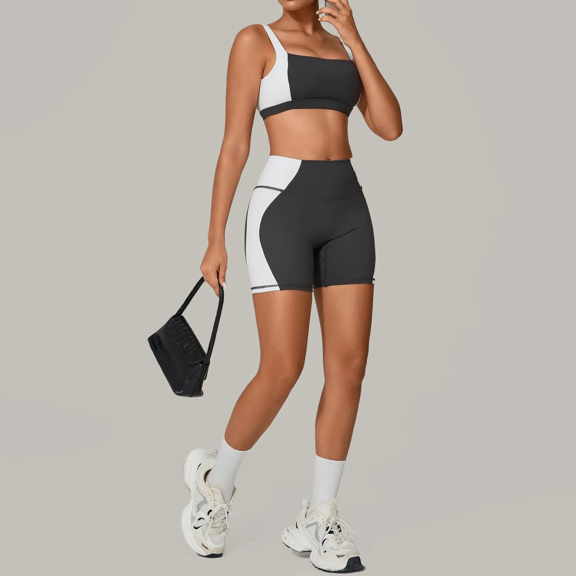 Design: Colorblock seamless crop top & high-waisted shorts
