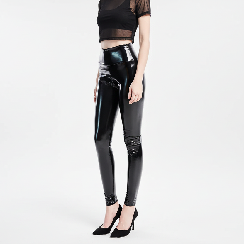 Trend4us Glossy Faux Leather High-Waisted Leggings
