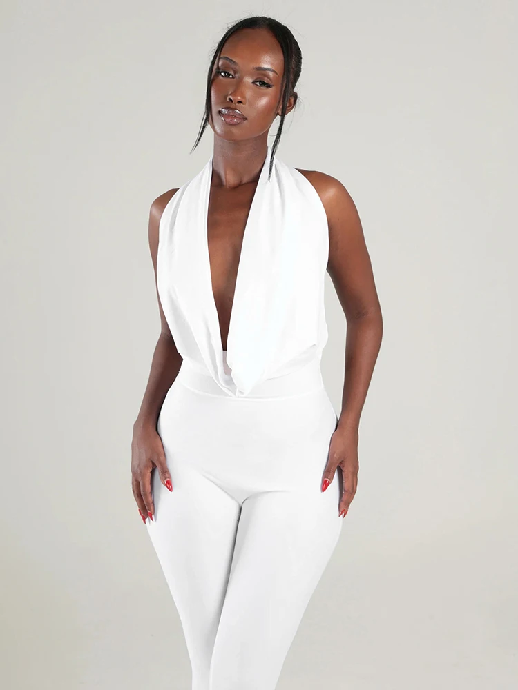 Clean, modern, and irresistibly flattering, this jumpsuit is a statement essential for women who embrace bold simplicity.