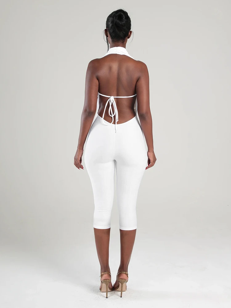 Trend4us Halter Plunge Backless Capri Jumpsuit
