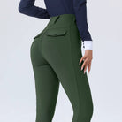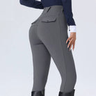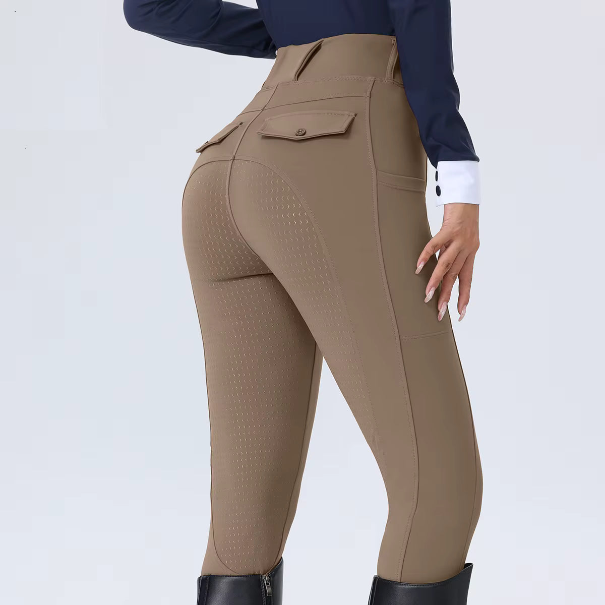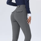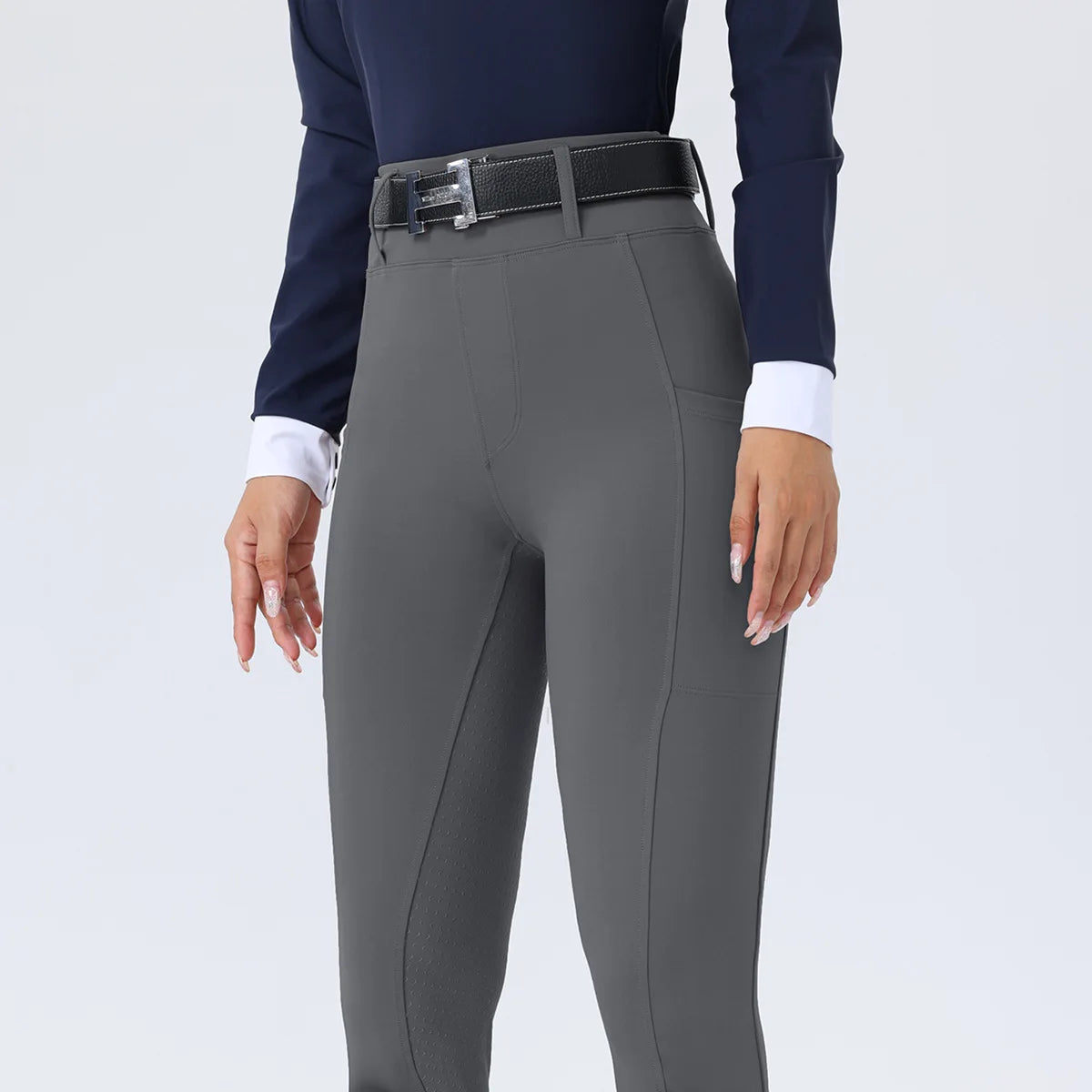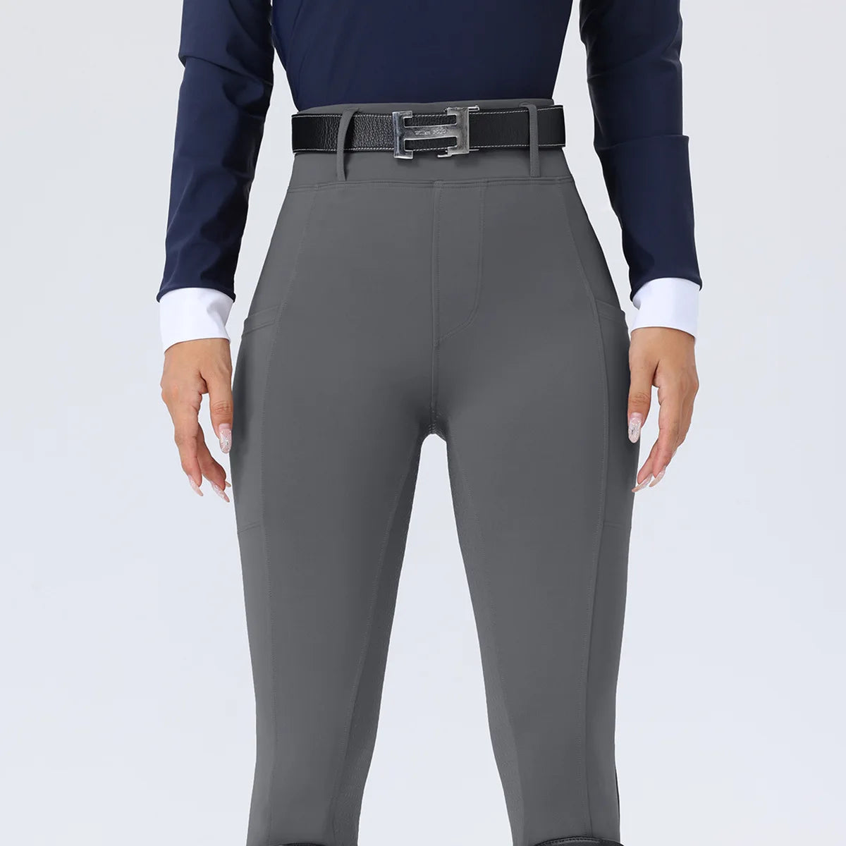 The high-rise waistband provides secure core support and a streamlined silhouette, while strategically placed full-seat grip panels improve control and confidence during riding sessions. Functional side pockets and refined back pocket detailing add practicality without compromising the polished, equestrian-inspired aesthetic. Perfect for training, lessons, or stable days, these leggings transition effortlessly from saddle to street.