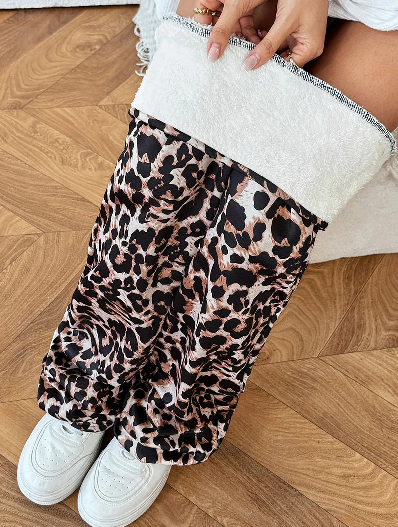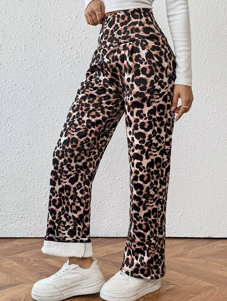 Trend4us Leopard Fleece-Lined High-Waisted Pants