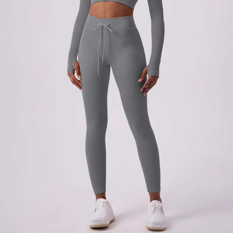 Trend4us Ribbed High-Waisted Drawstring Sculpting Leggings