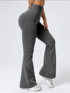 Trend4us Ribbed High-Waisted Sculpting Flare Pants