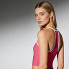 - Racerback design offers unrestricted shoulder movement and a sporty aesthetic