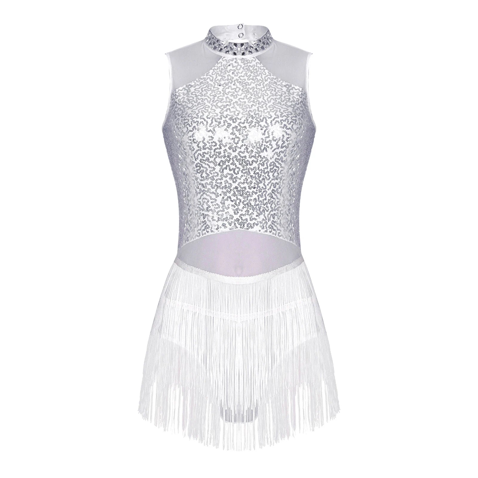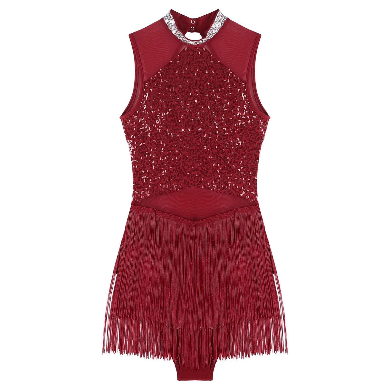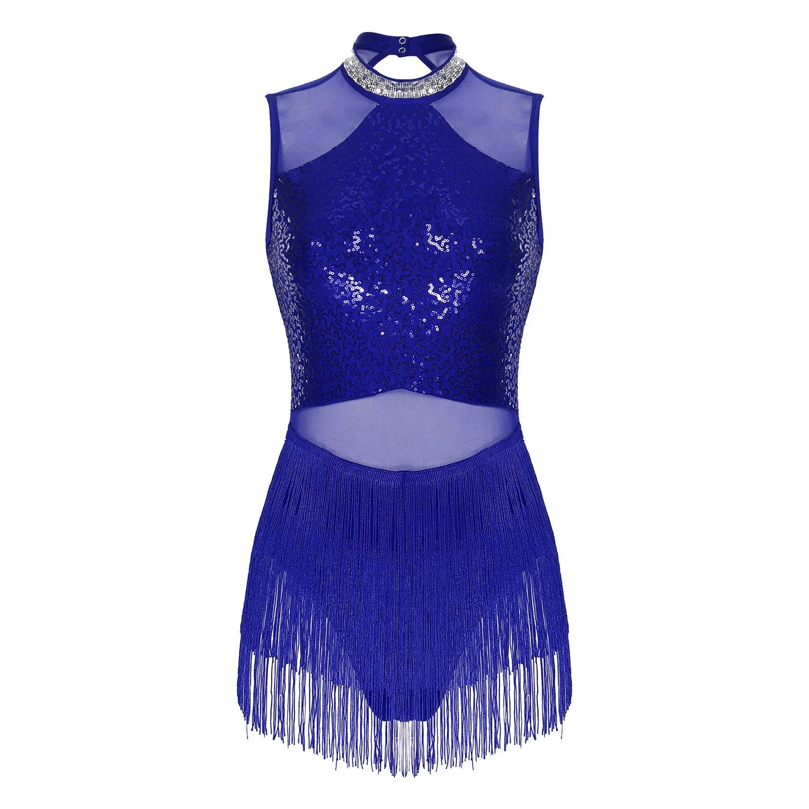 Trend4us Sequin Mesh Latin Dance Leotard Dress