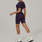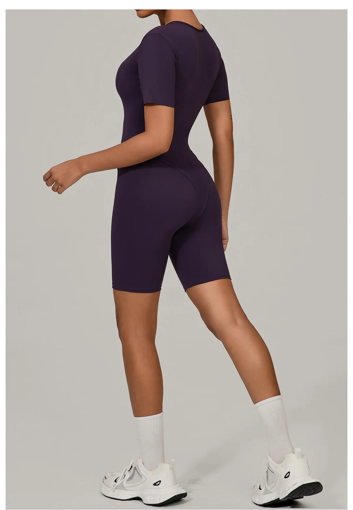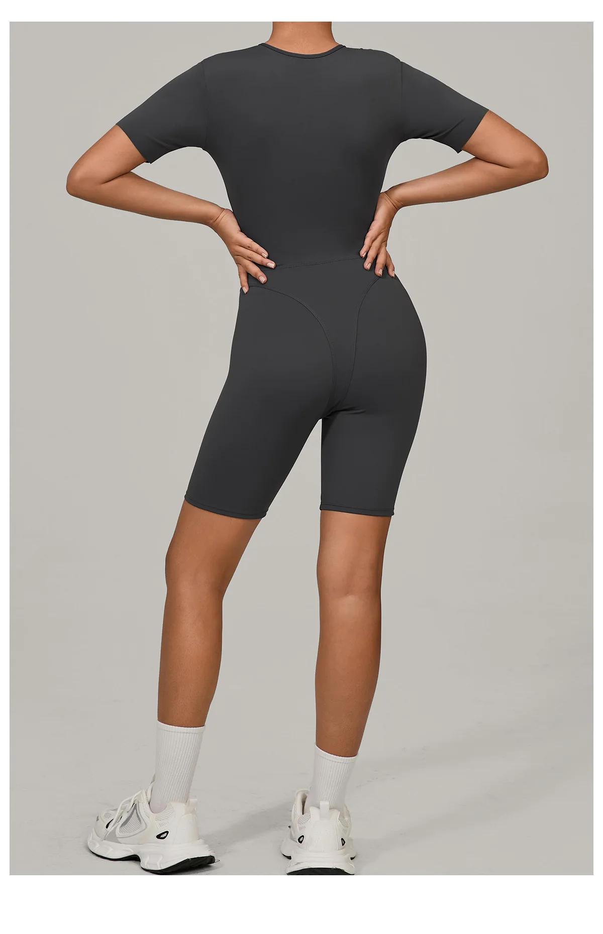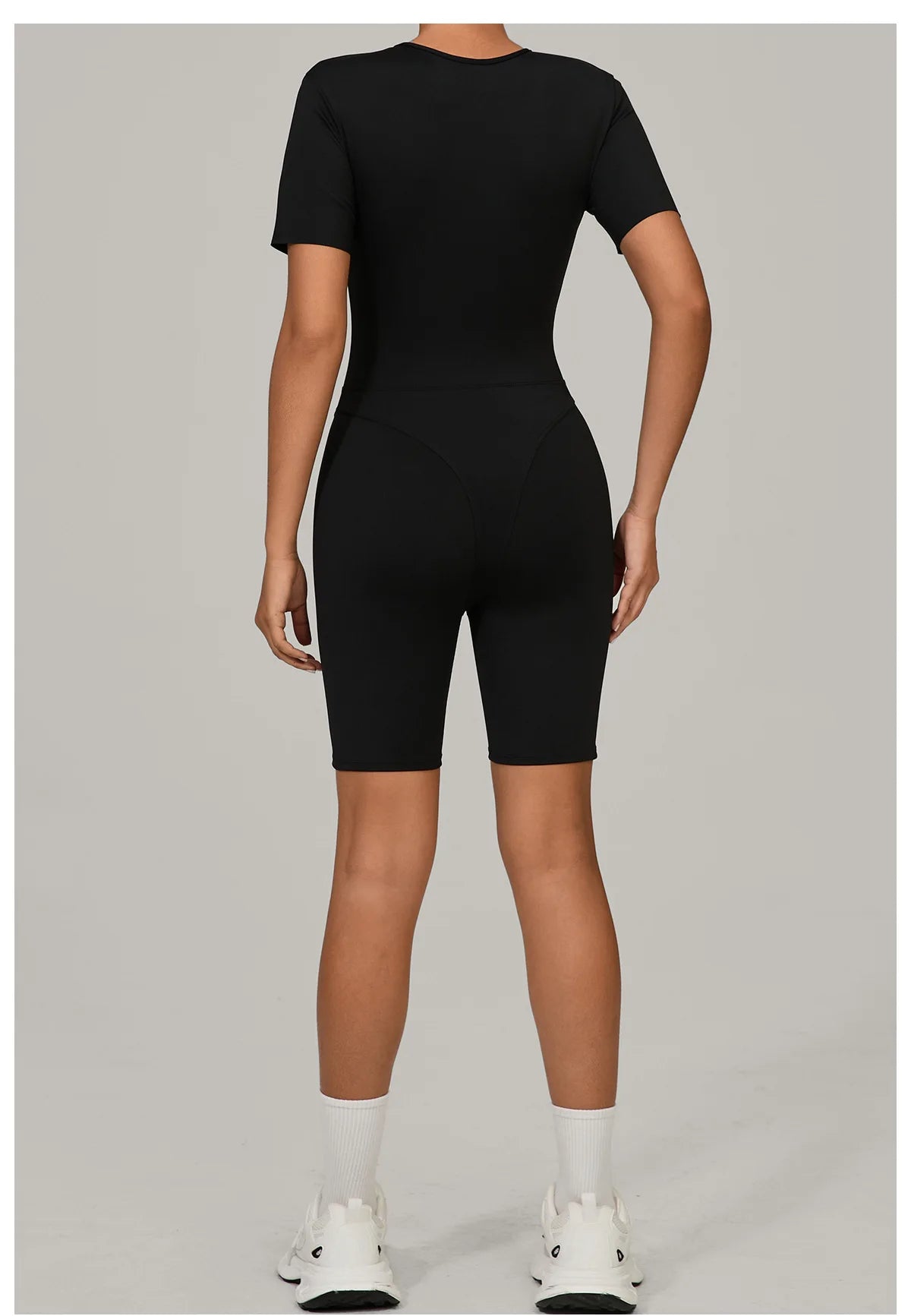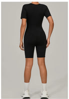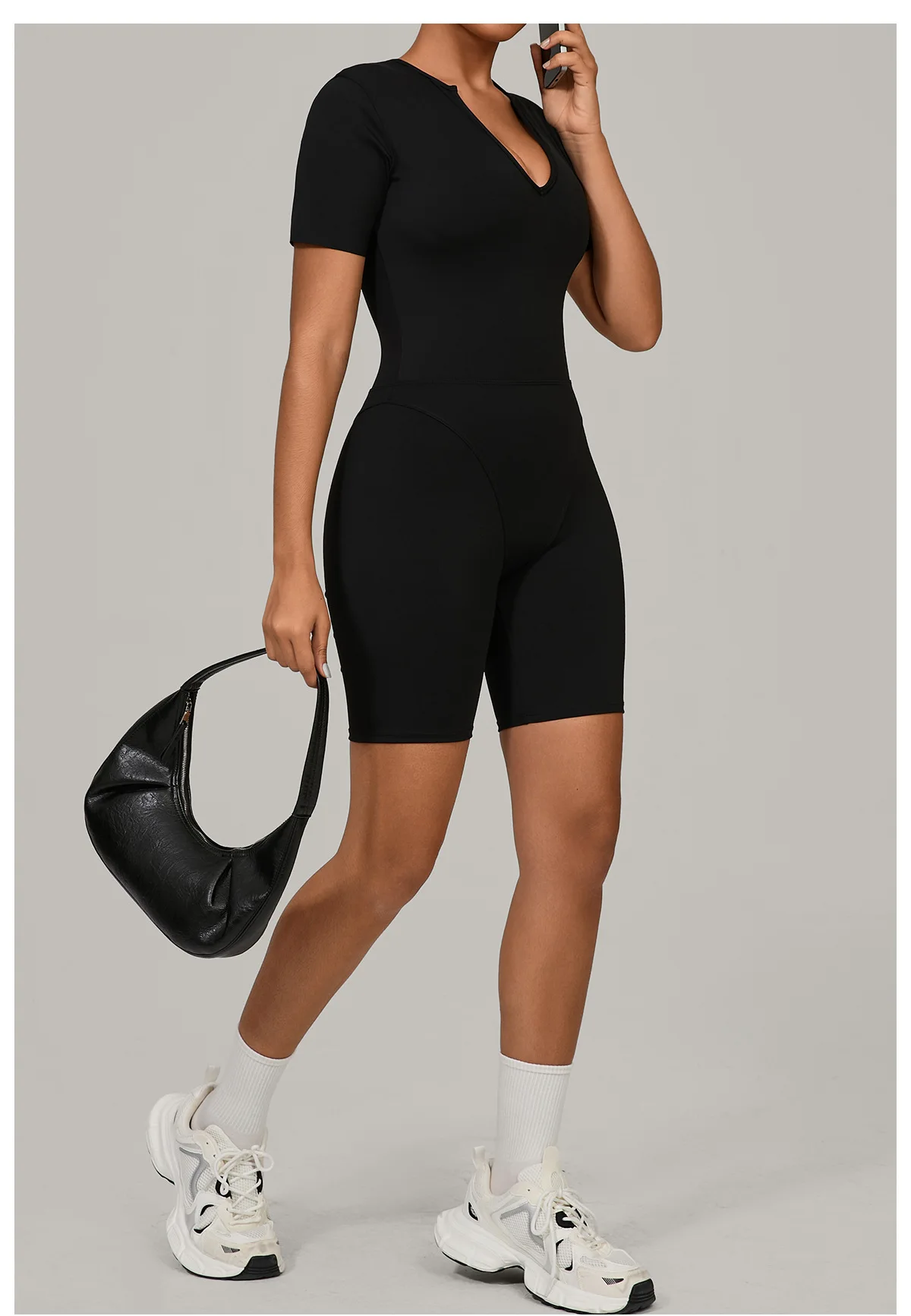 The Trend4us Short-Sleeve V-Neck Activewear Romper blends sporty performance with a sleek, modern silhouette. Crafted from breathable, four-way stretch fabric, this one-piece offers a supportive fit with a deep V-neckline for a touch of style. The mid-thigh length provides flexibility and comfort for a variety of activities, from gym training to cycling, yoga, or casual athleisure wear. Its smooth, sculpting design moves with your body, keeping you confident and comfortable throughout your day.