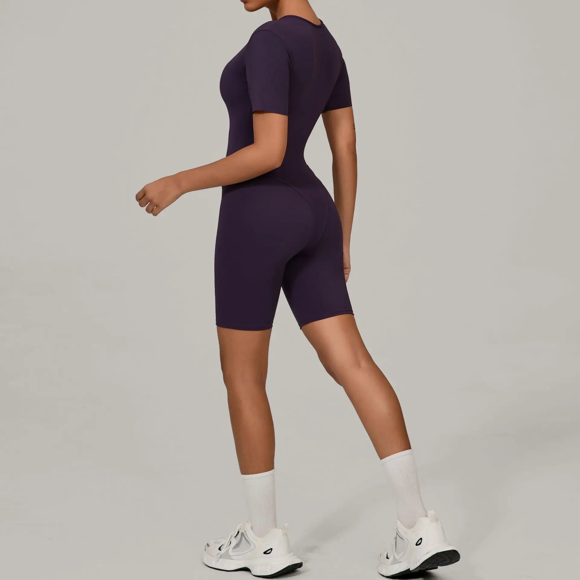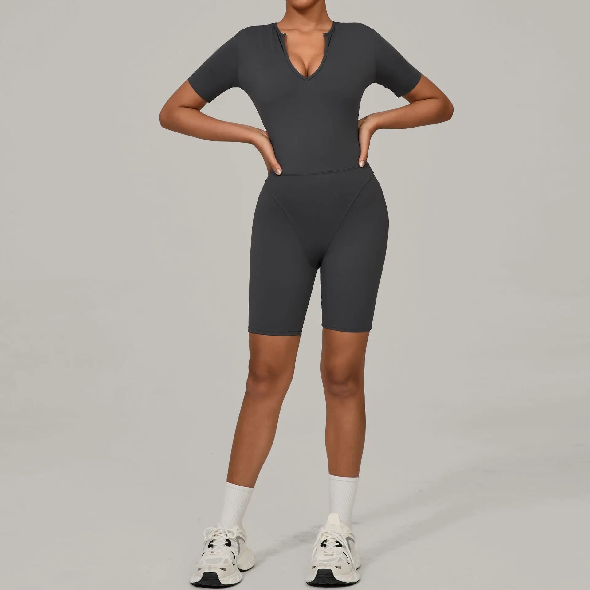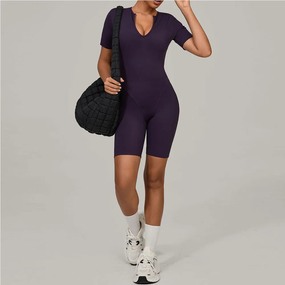Trend4us Short-Sleeve V-Neck Activewear Romper