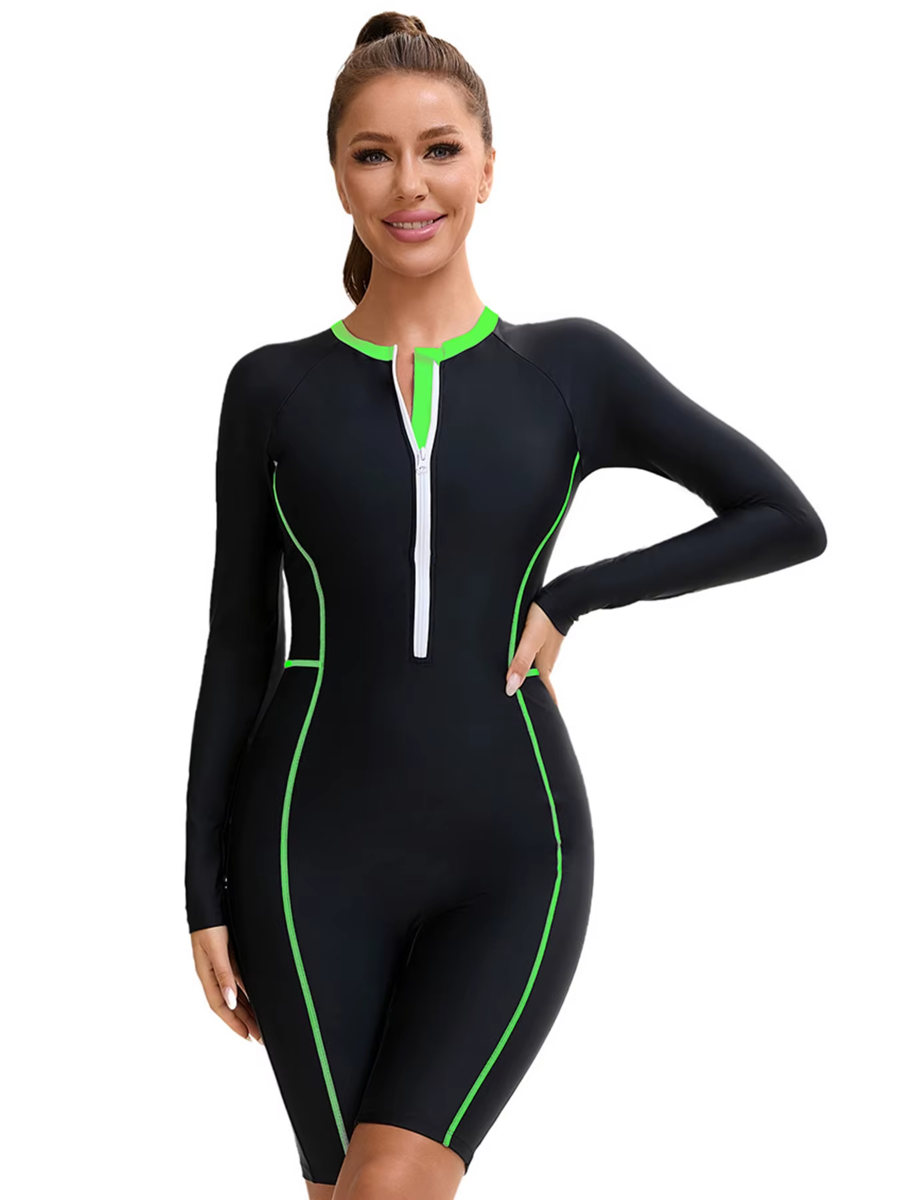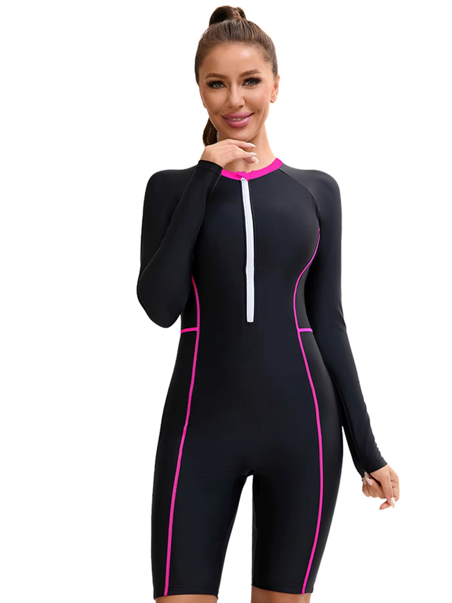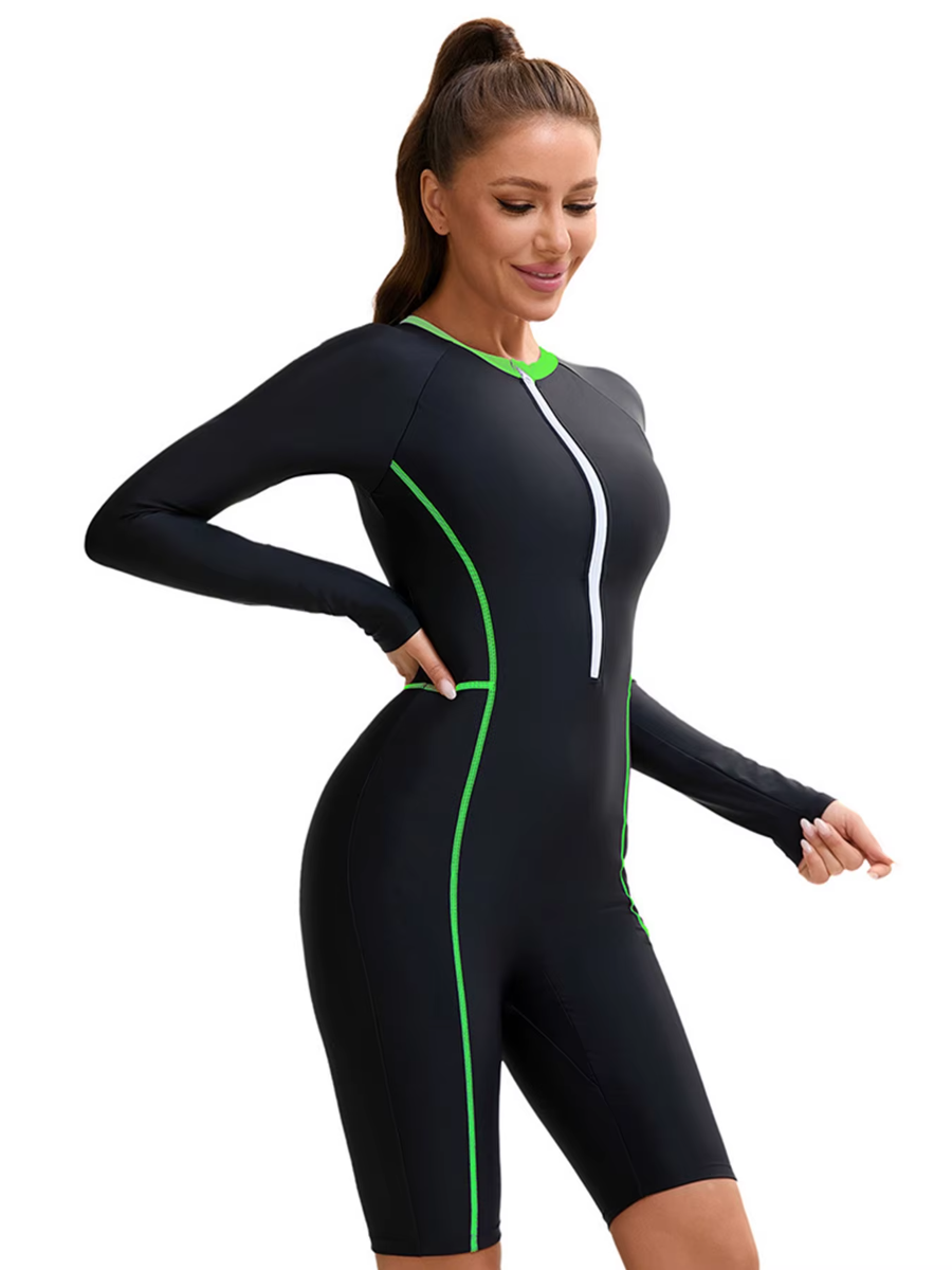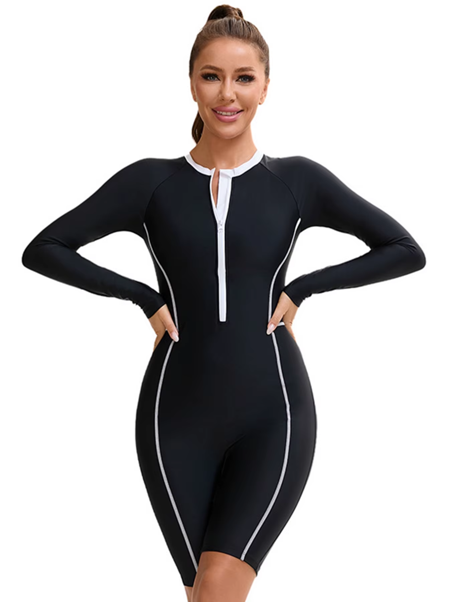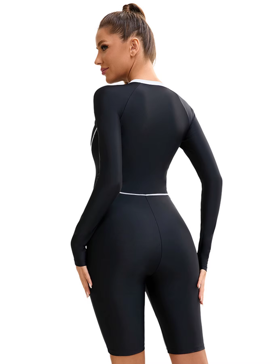Trend4us Zip-Front Long Sleeve One-Piece Swim Romper