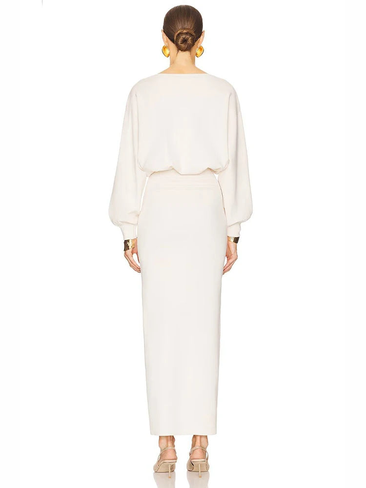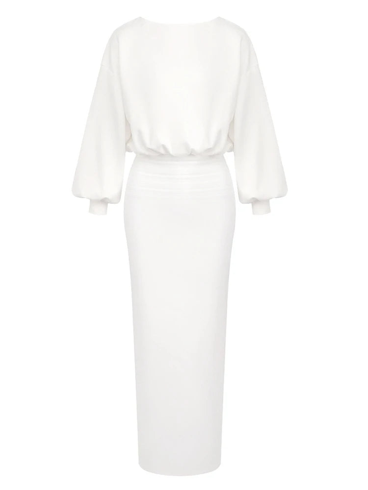 Trend4us Elegant Batwing Sleeve Fitted Maxi Dress