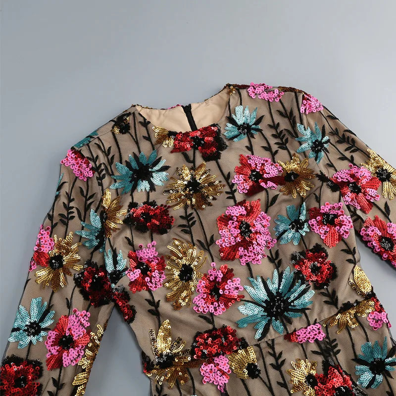 Trend4us Floral Embroidered Sheer Mesh Long Sleeve Gown