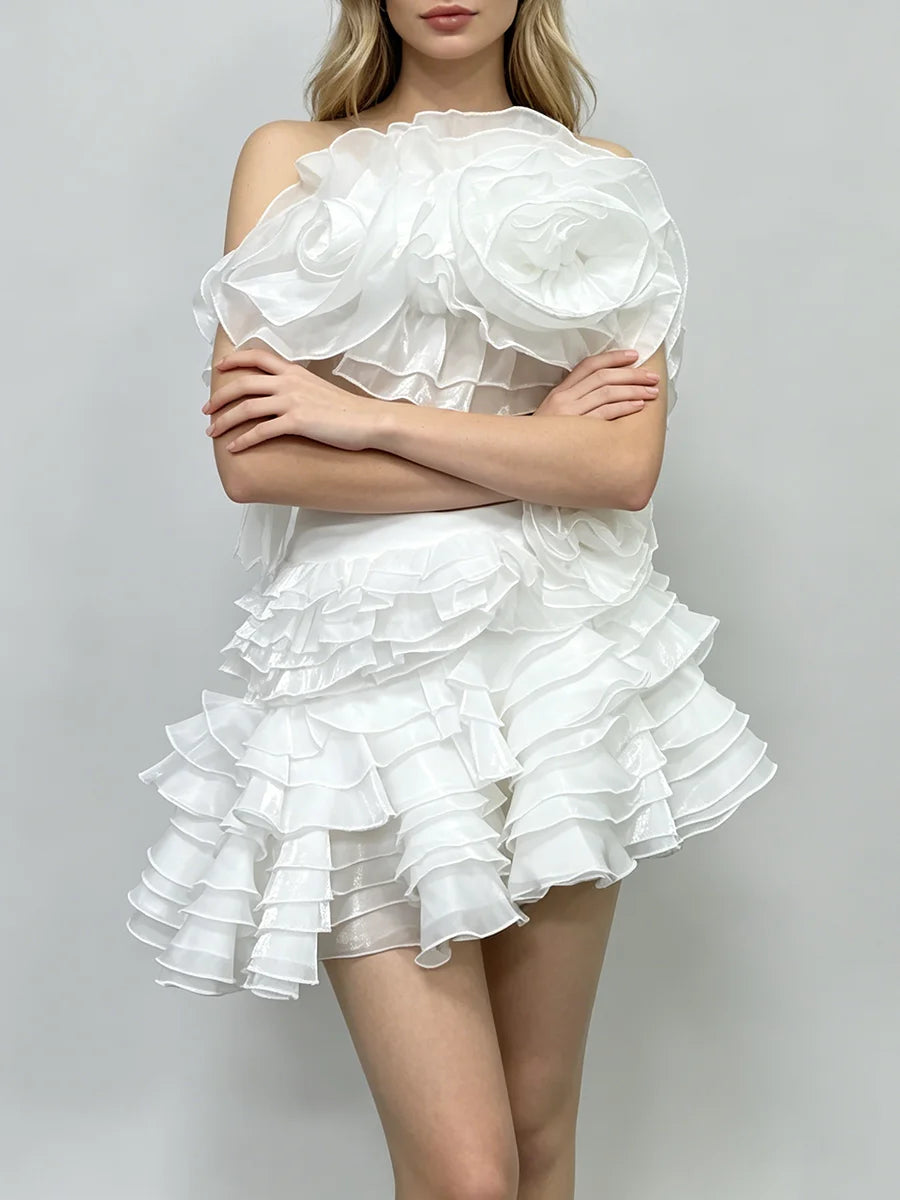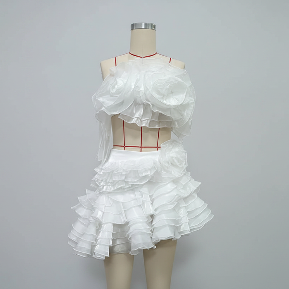 Make a statement that cannot be ignored in the Luxe Strapless 3D Ruffle Crop Top & Mini Skirt Set. The breathtaking three-dimensional ruffles cascade across the strapless crop top, creating a sculptural, editorial look that is bold, modern, and utterly captivating. Paired with the sleek A-line mini skirt, this two-piece set delivers a complete, head-to-toe look that transitions effortlessly from cocktail parties to special occasions.