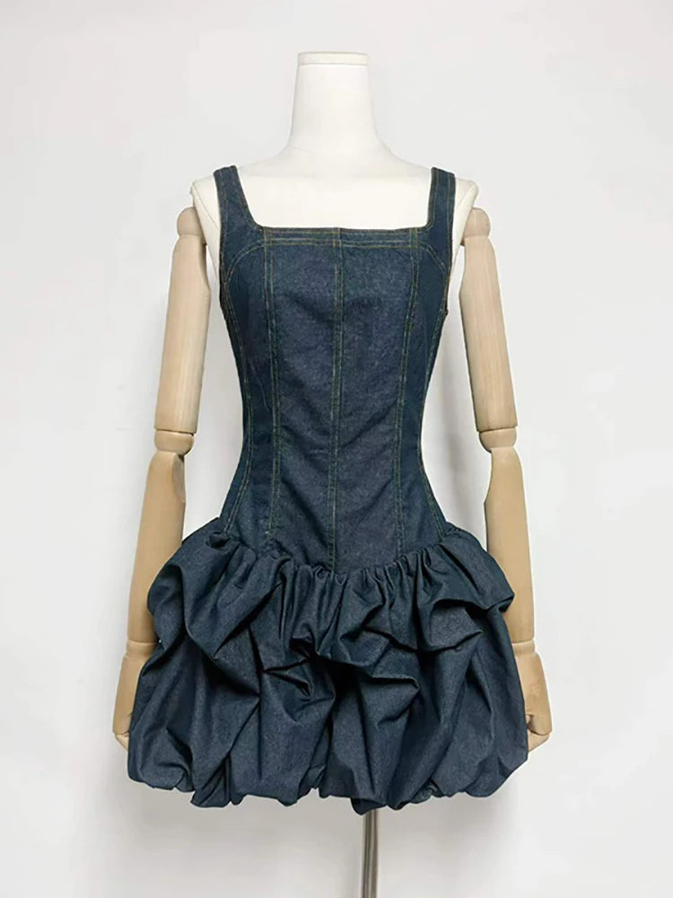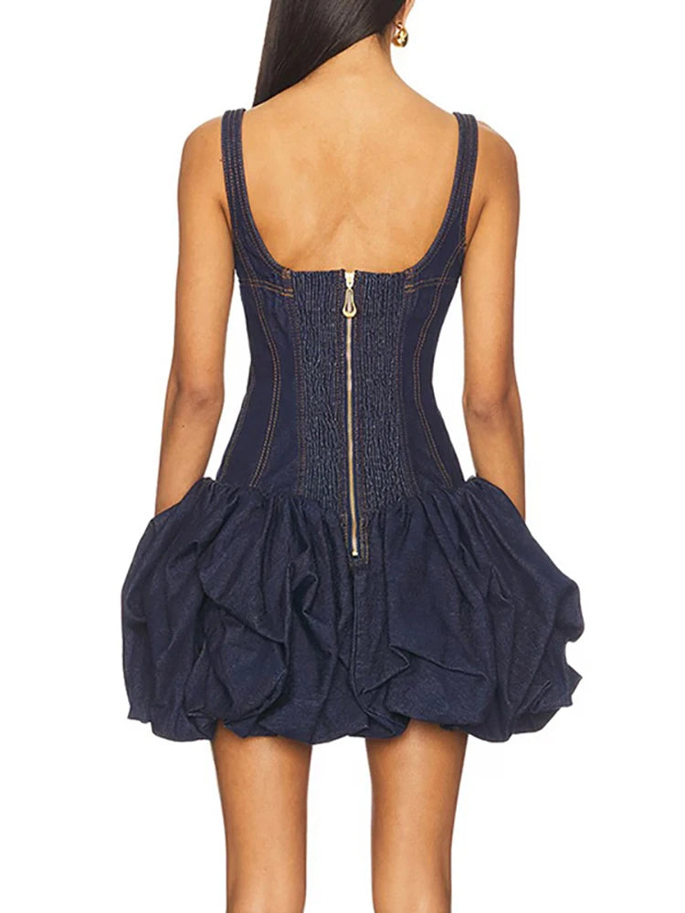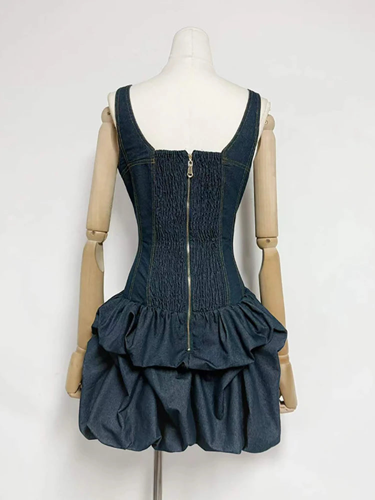 Trend4us Denim Corset Ruched Bubble Mini Dress