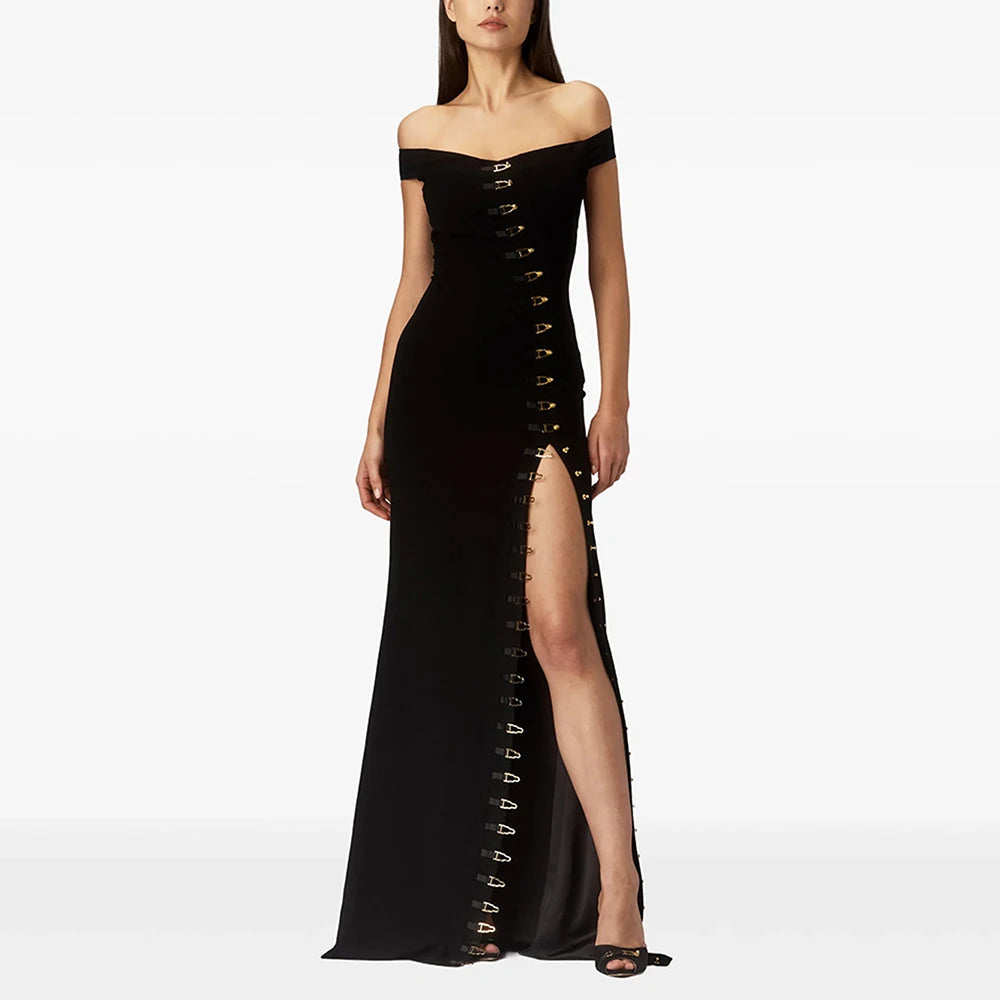 Trend4us Elegant Off-Shoulder Slit Maxi Evening Dress