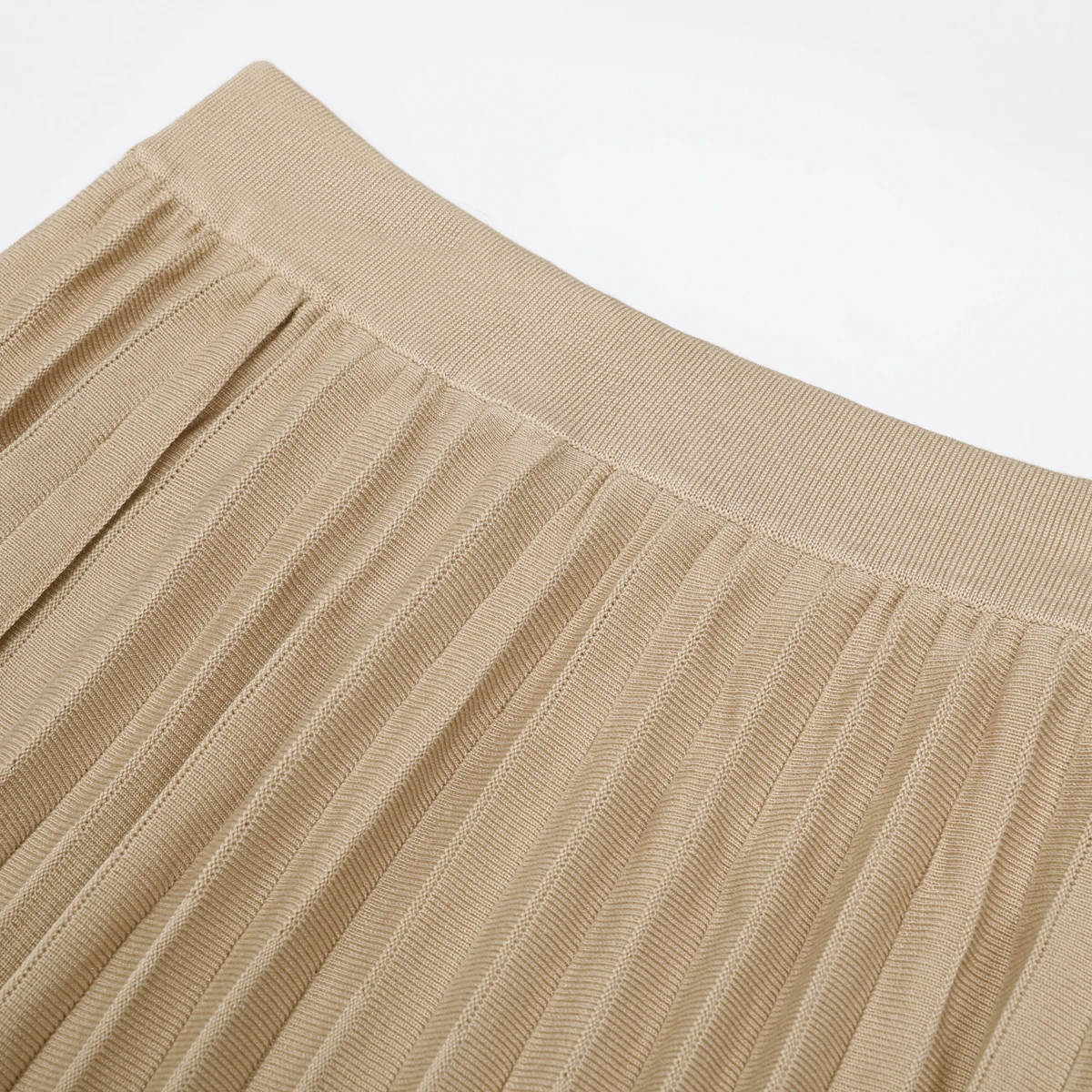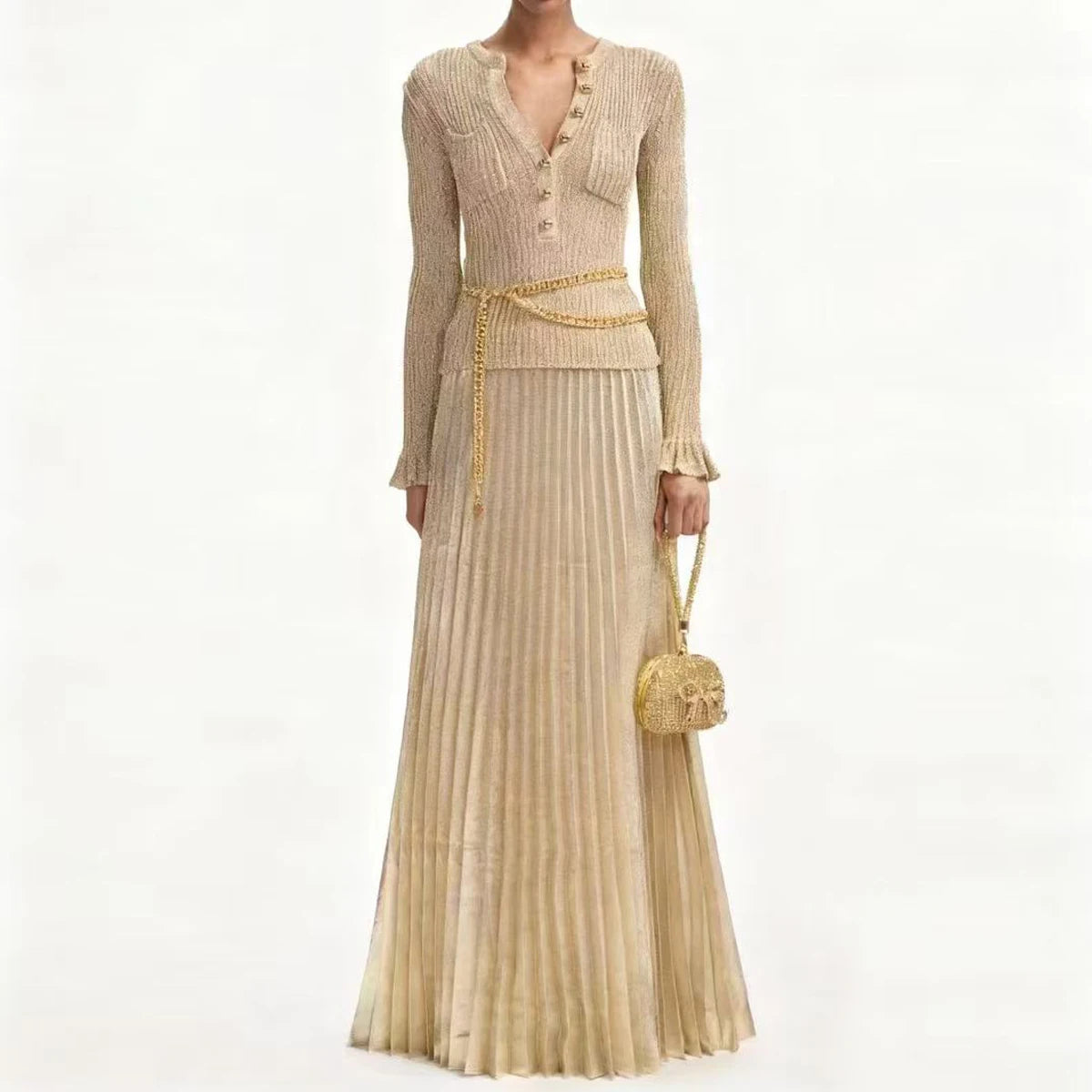 Trend4us Elegant Pleated Maxi Skirt Knit Two-Piece Set