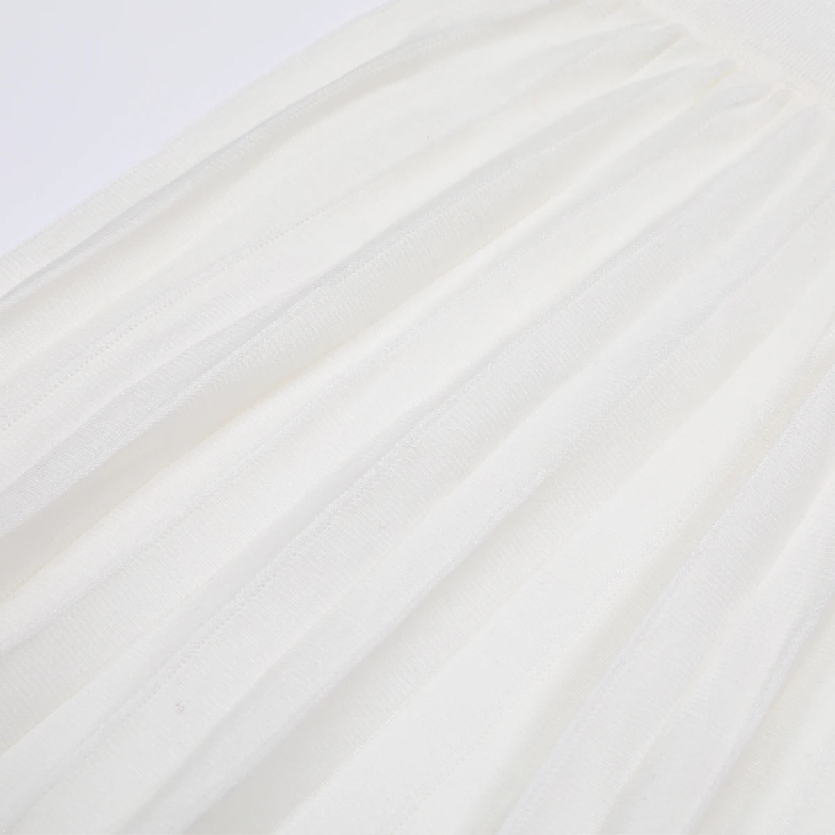 - Flowing pleated maxi skirt for graceful, elongating movement