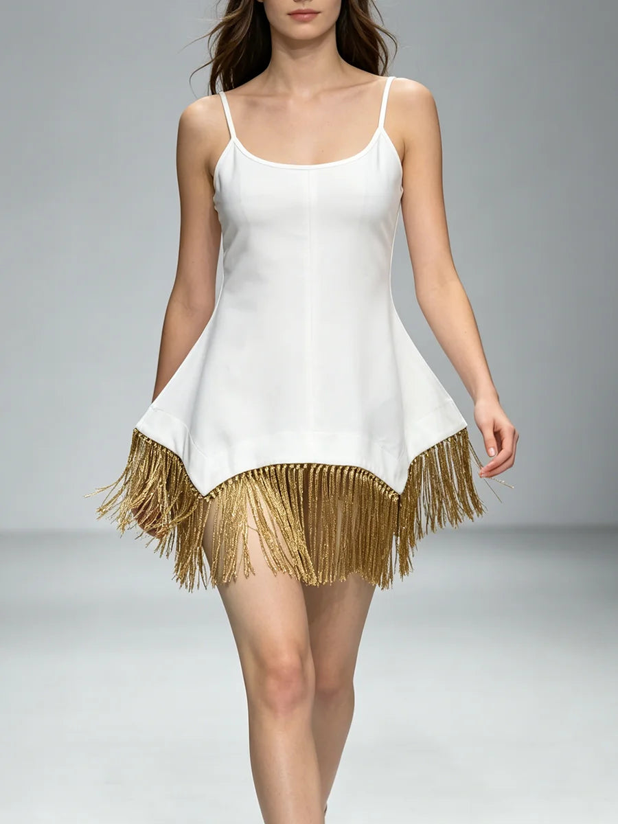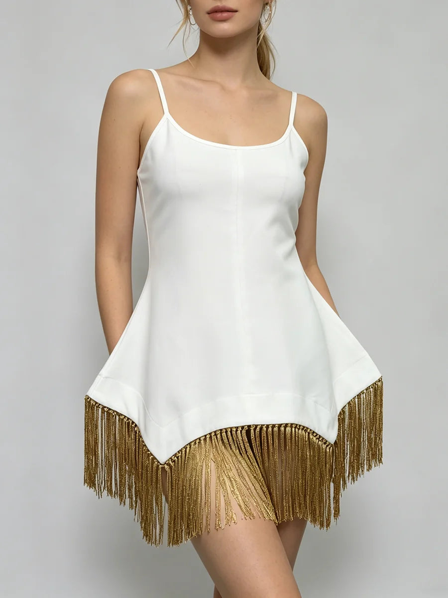 Trend4us Luxe Fringe Hem Slip Mini Dress
