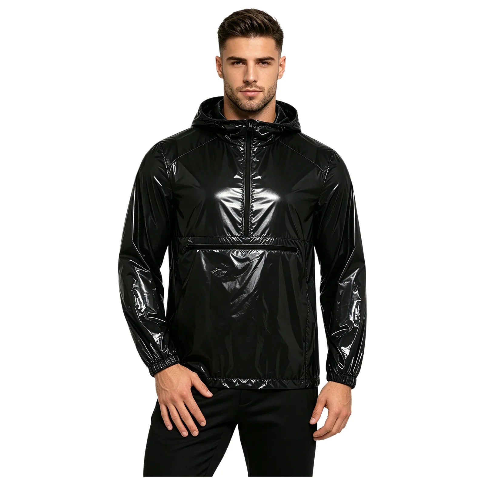 Stay sharp in any weather with the perfect blend of streetwear edge and functional performance. The Trend4us Lightweight Glossy Hooded Windbreaker is designed for modern men who want a sleek, standout look without compromising comfort. Featuring a high-shine finish and a streamlined silhouette, this jacket delivers a bold urban vibe while keeping you protected from wind and light rain.