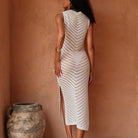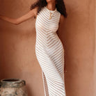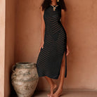 Effortlessly breezy and resort-ready, this sleeveless crochet cover-up beach dress is the perfect layer over your swimwear. The open-knit crochet texture adds a boho, textured touch while keeping you cool and stylish on the beach, by the pool, or at a seaside dinner. Available in Khaki, Black, and White.