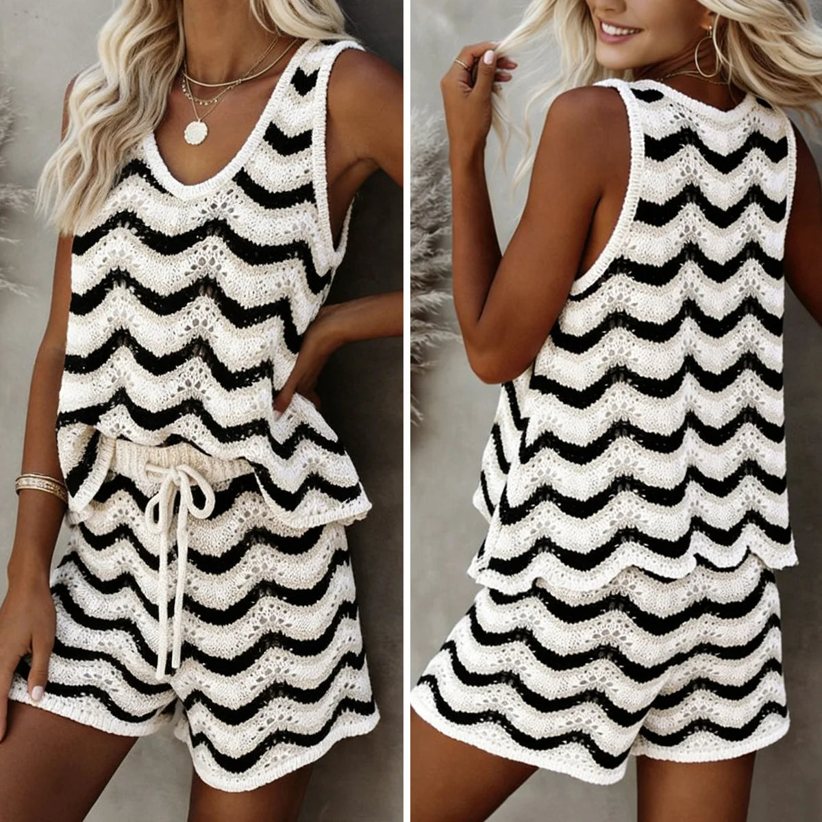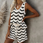 Trend4us Wavy Knit Sleeveless Top & Drawstring Shorts Two-Piece Set