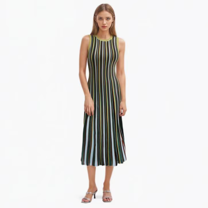 Trend4us Retro Multicolor Striped Knit Midi Dress
