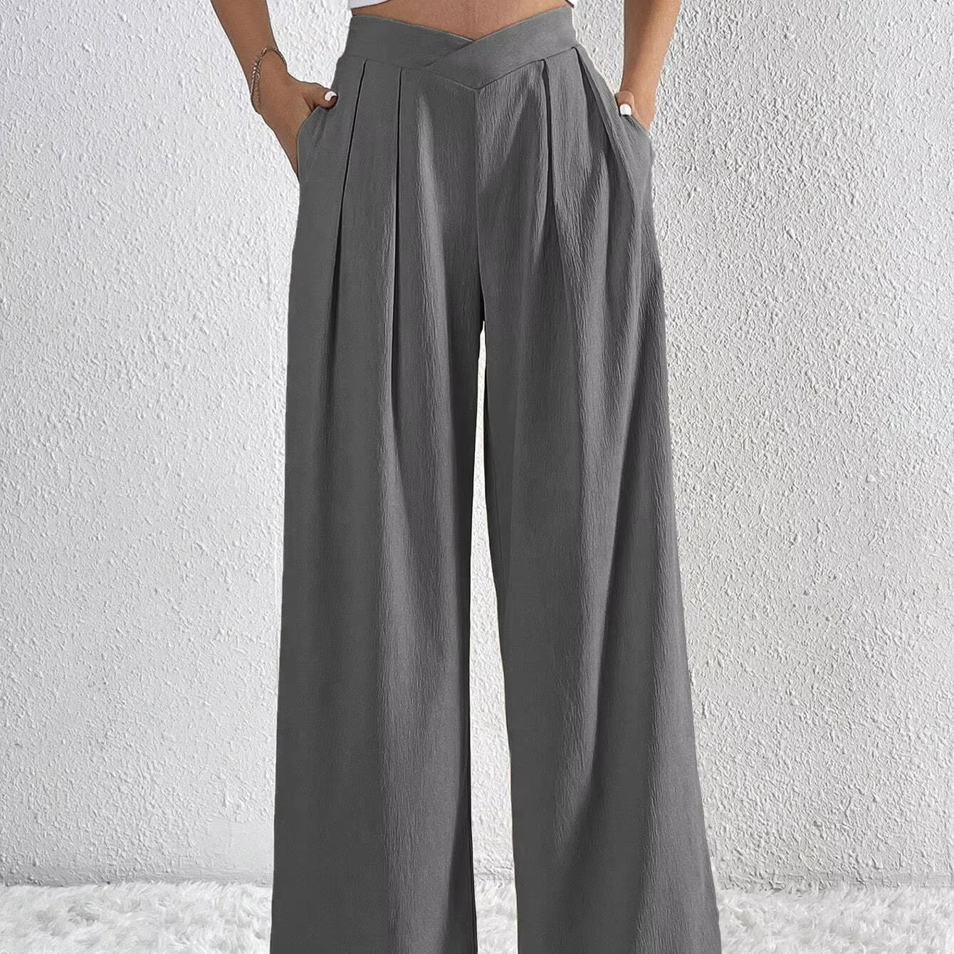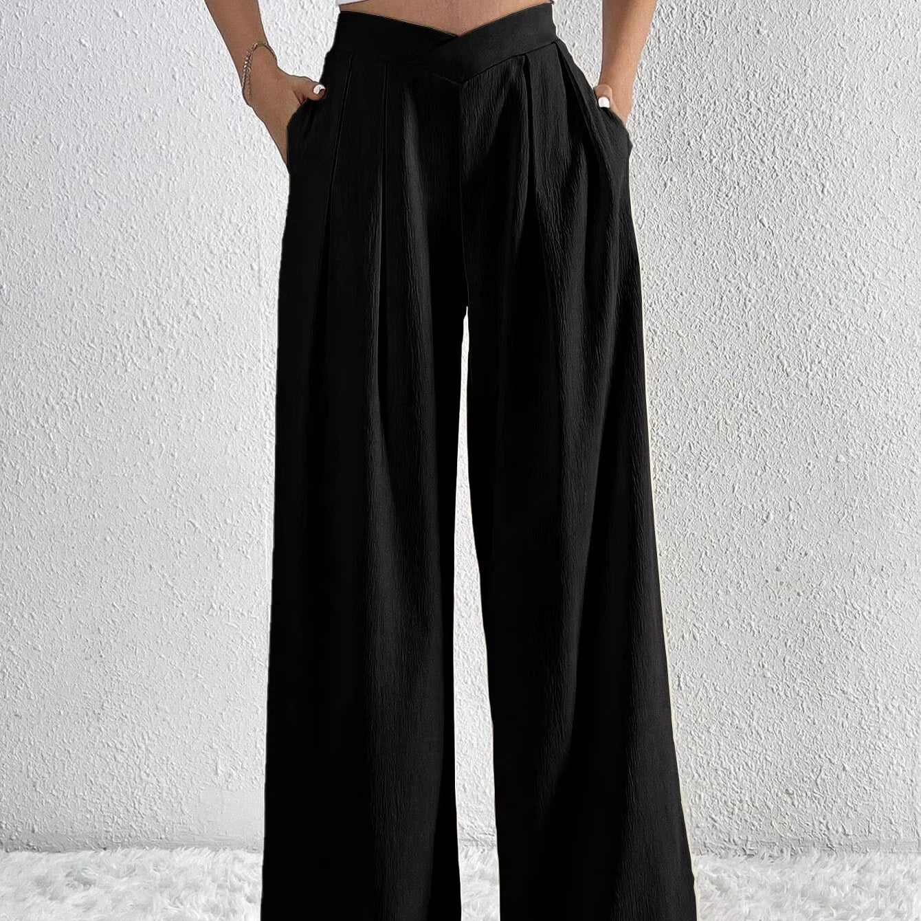 Trend4us Women's Casual Pleated Wide-Leg Pants