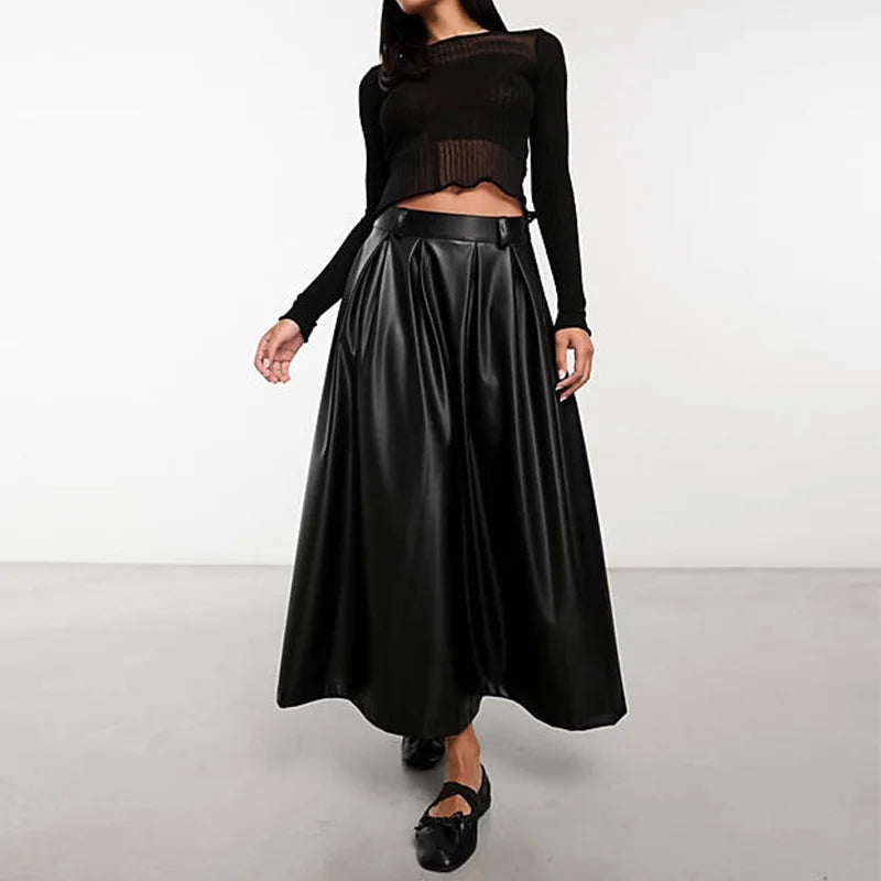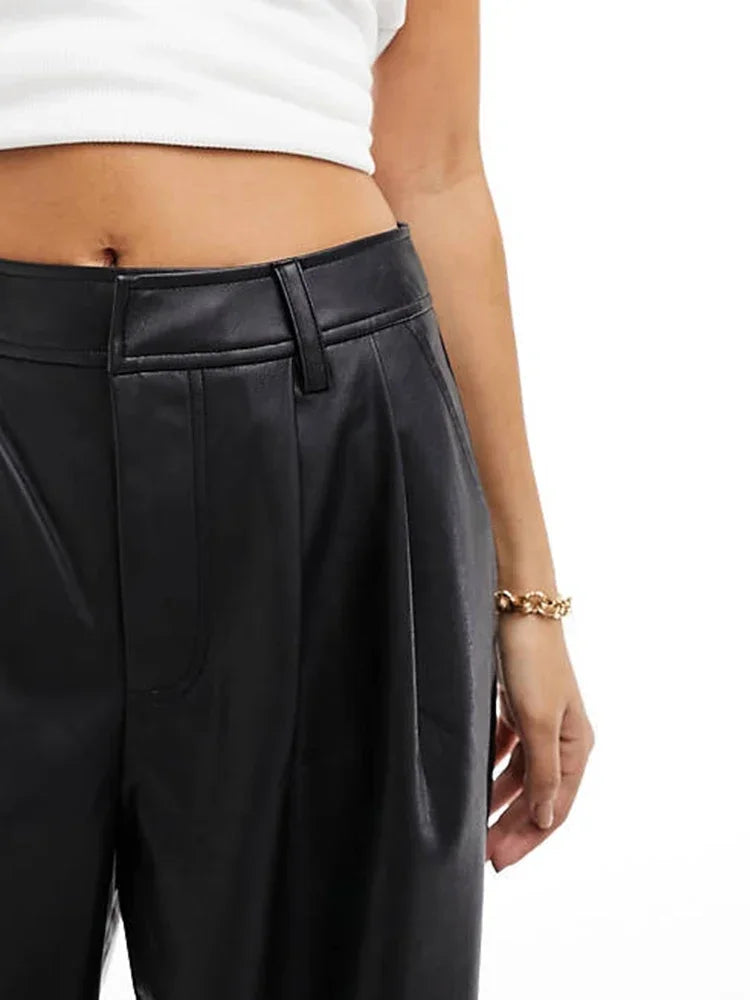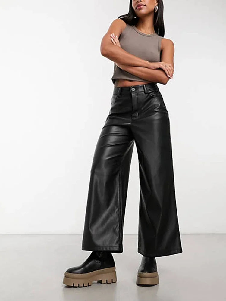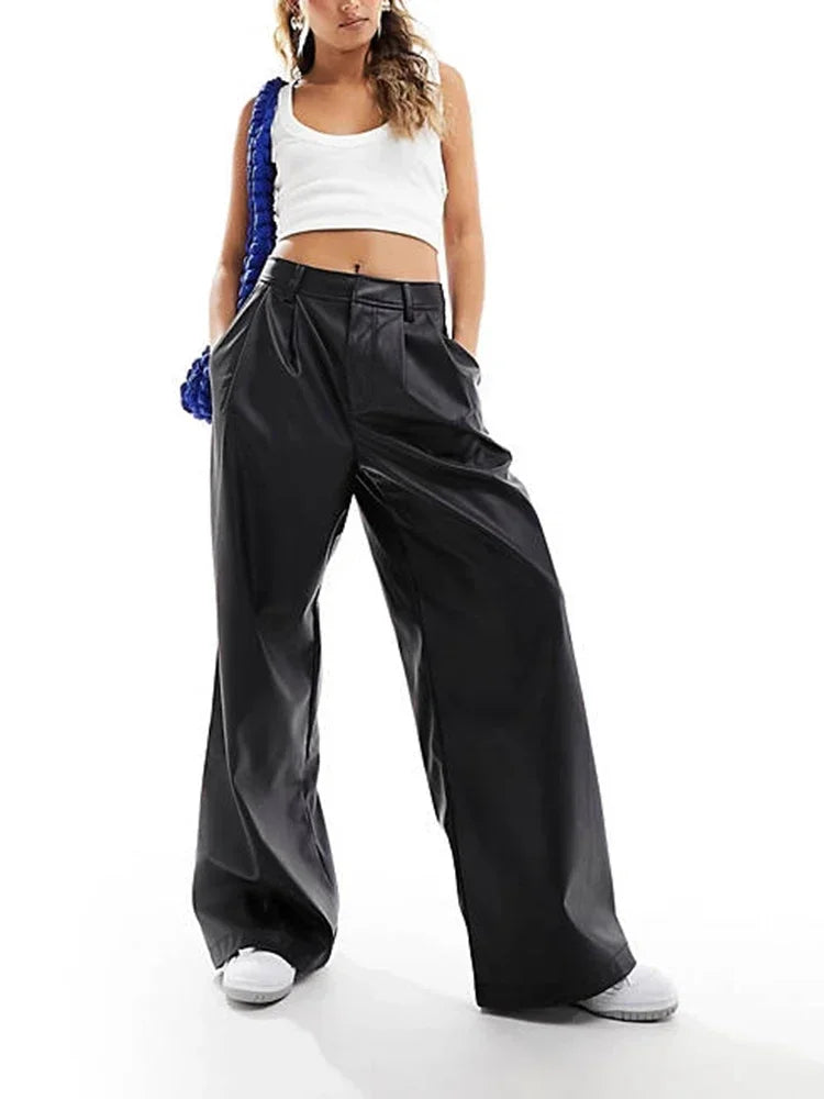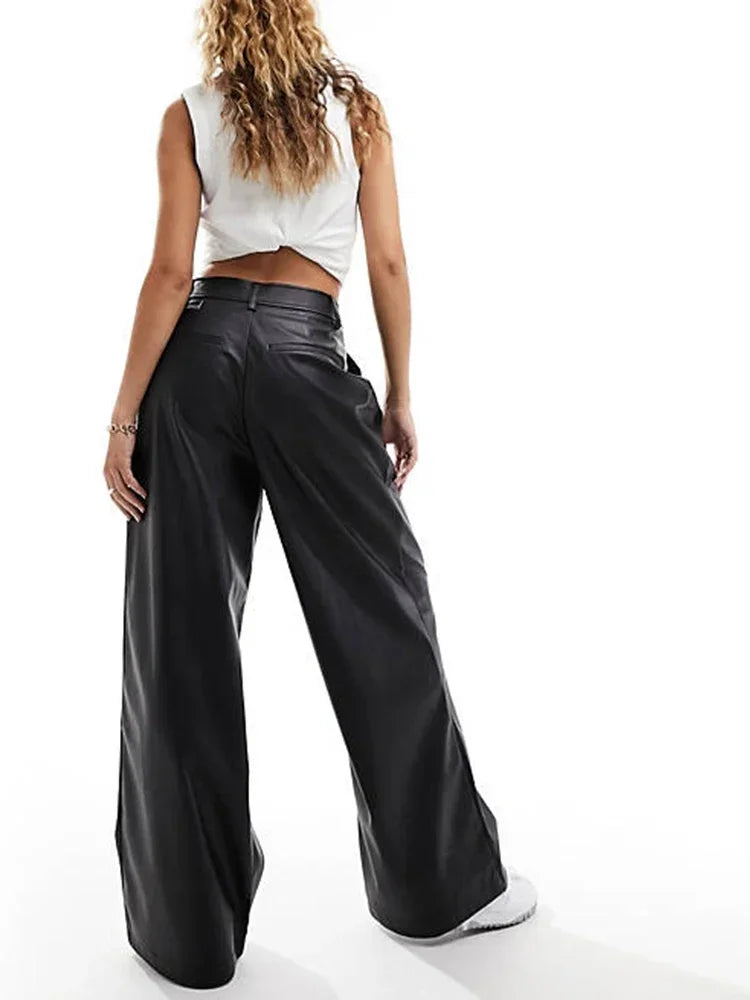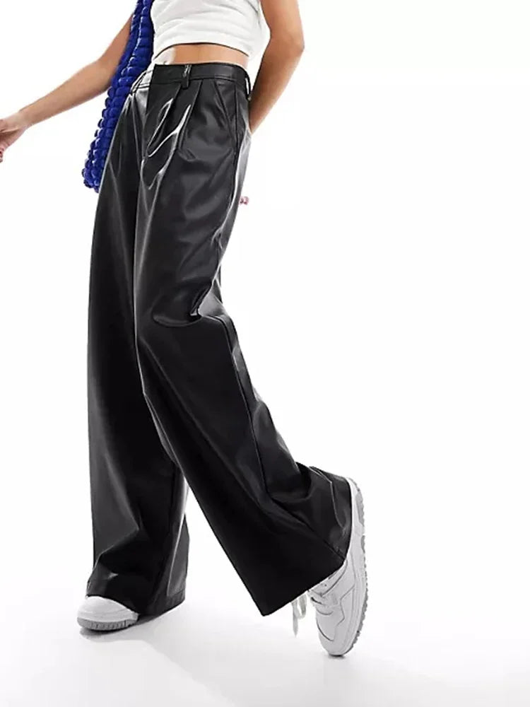 Trend4us Modern Wide-Leg Faux Leather Pants