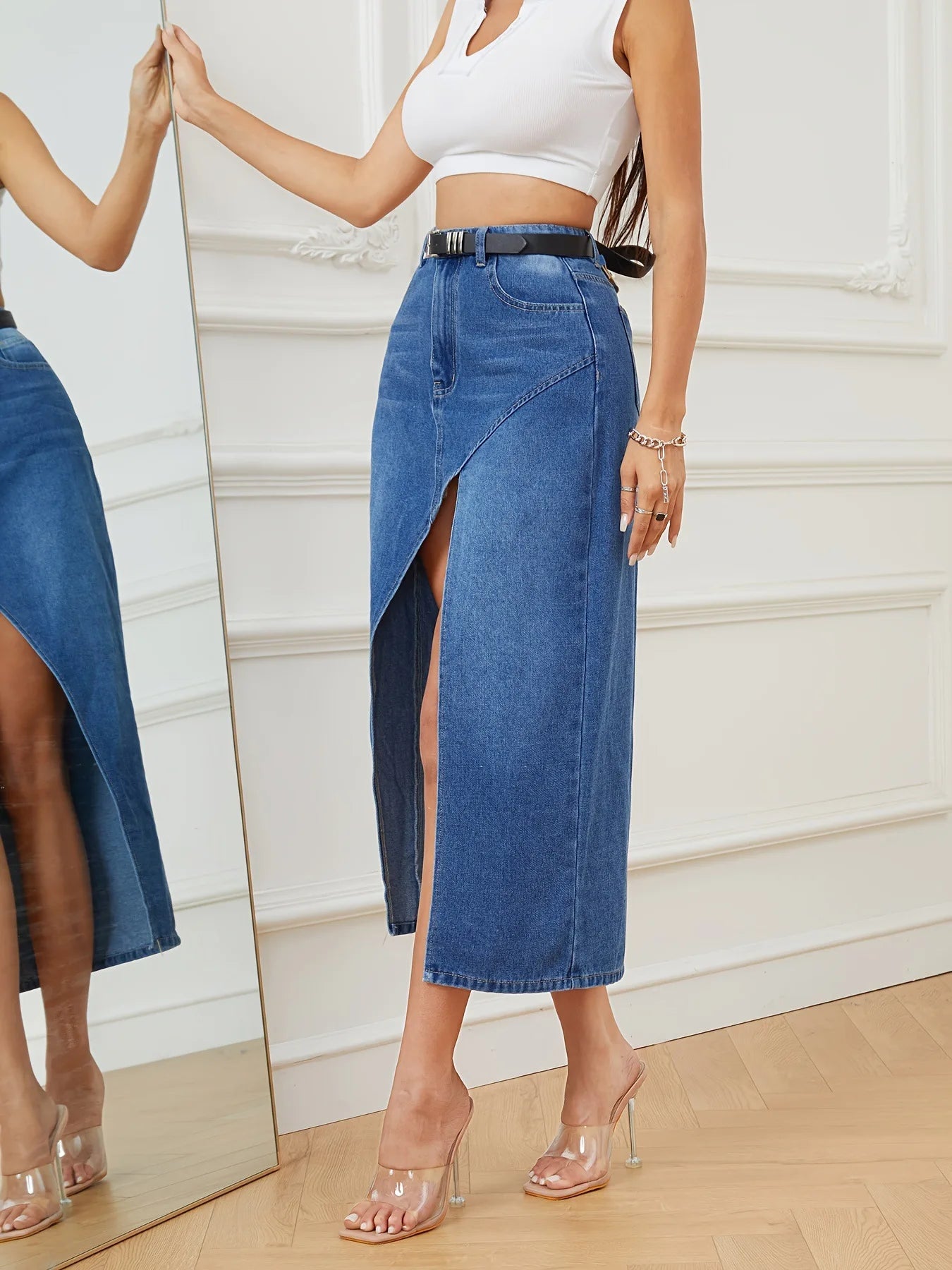 Trend4us Sleek Halter Backless Belted Slit Dress