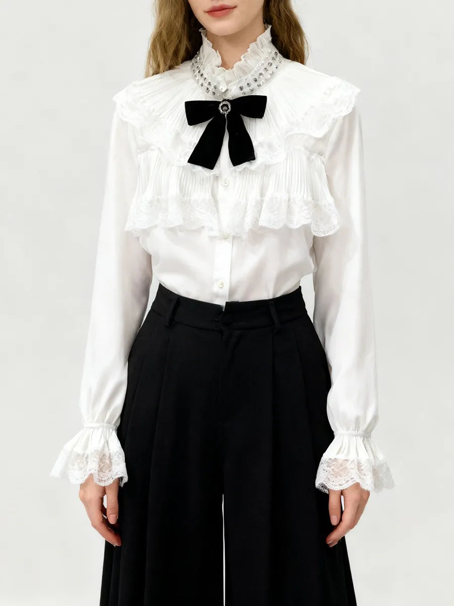 Trend4us Elegant Victorian Pleated Lace Blouse