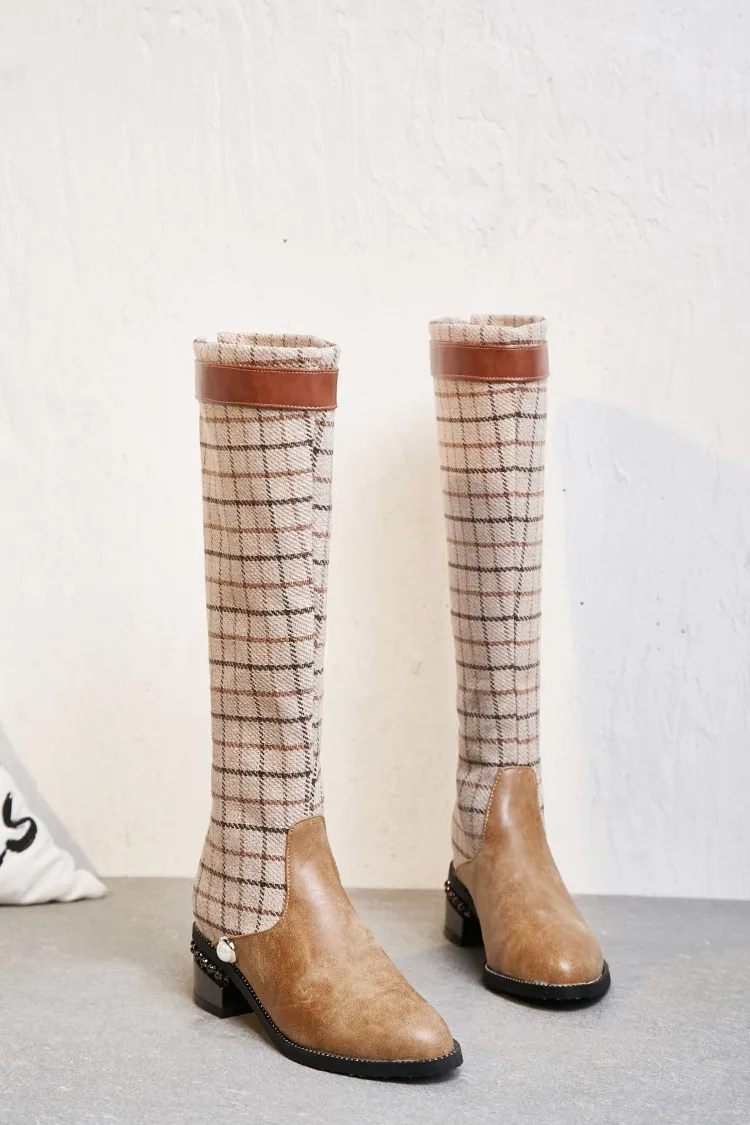Elevate your cold-season wardrobe with the Trend4us Elegant Knit-Panel Pearl Accent Knee Boots, a sophisticated fusion of classic equestrian charm and modern luxury detailing. Designed with a structured faux leather foot and a flexible knit or tweed-patterned shaft, these boots create a sleek, elongated silhouette while offering exceptional comfort and mobility.