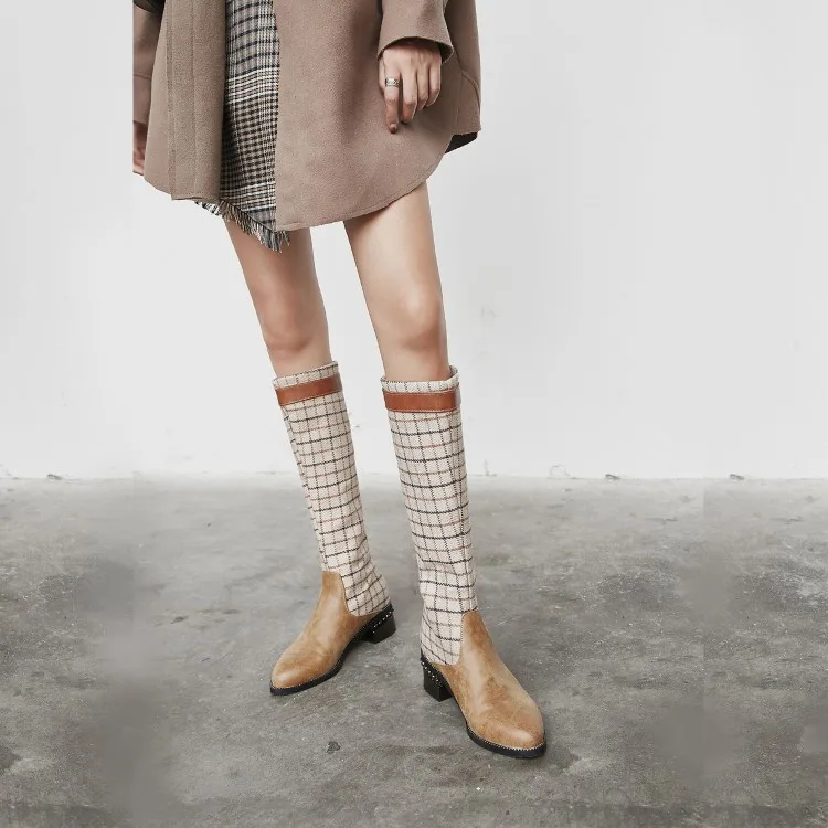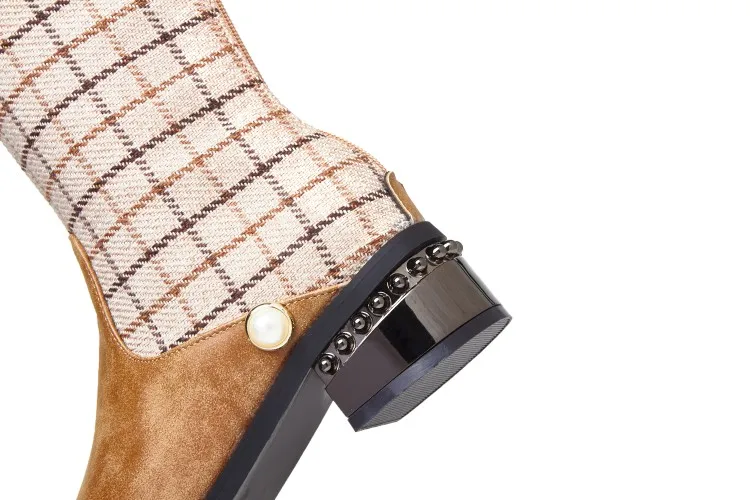 Upper Material: Premium faux leather + knit/tweed fabric shaft