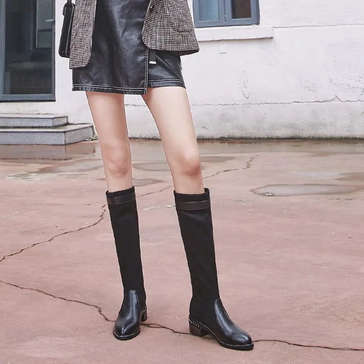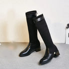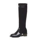 Trend4us Elegant Knit-Panel Pearl Accent Knee Boots
