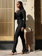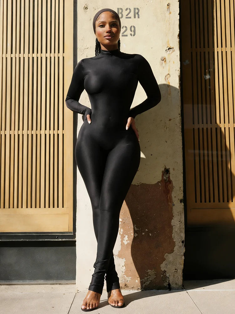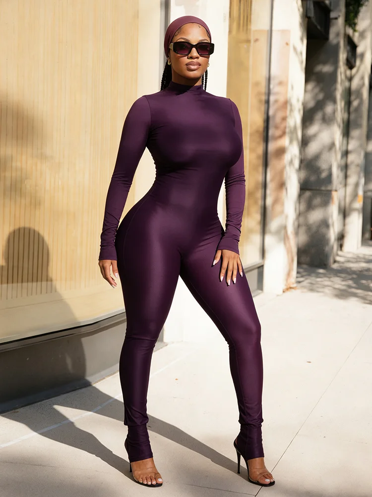 Sleek, sculpting, and effortlessly powerful — the Trend4us Seamless High-Neck Long-Sleeve Sculpting Jumpsuit is designed to contour your body like a second skin. Crafted from a smooth, stretch-infused fabric, this jumpsuit enhances curves while providing a clean, streamlined silhouette. The high neckline and long sleeves add a modern, minimalist edge, making it perfect for streetwear styling, travel looks, or elevated athleisure. Whether worn solo or layered with statement accessories, this piece delivers confident, body-defining style from head to toe.
