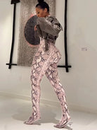 Step into bold, fashion-forward style with the Trend4us Turtleneck Long-Sleeve Printed Catsuit. Designed with a sleek, second-skin fit, this statement catsuit features lightweight stretch fabric with eye-catching all-over prints that sculpt and contour the body. The turtleneck neckline and long sleeves add a polished, elevated edge while balancing the sheer finish for a confident, modern silhouette.