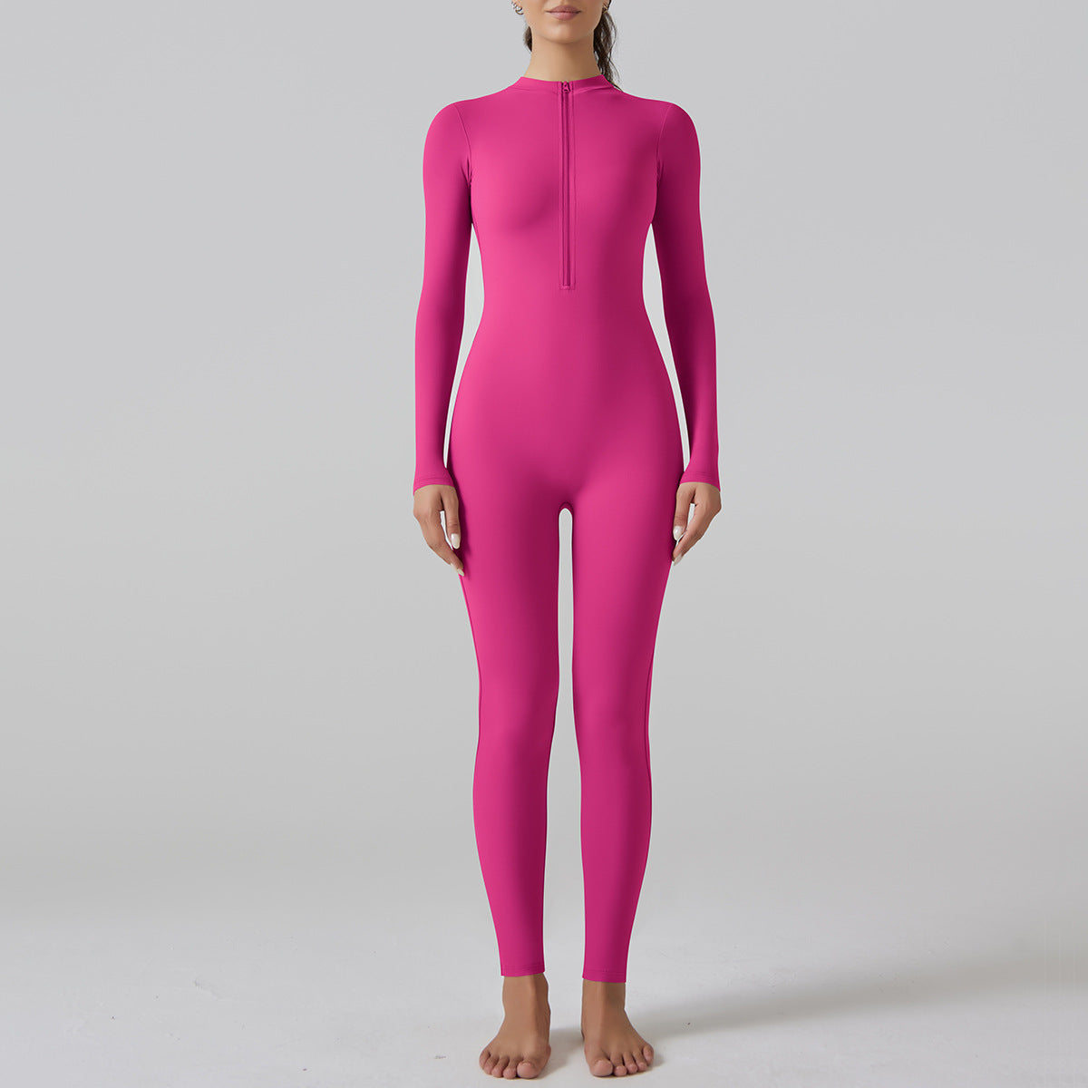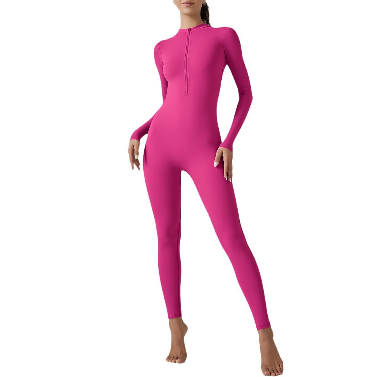 Introducing the Trend4us Women's Half-Open Zipper Sports Jumpsuit - the perfect combination of style and functionality for your active lifestyle. Crafted with a half-open zipper design, this jumpsuit provides easy ventilation and mobility while ensuring a secure fit. Stay comfortable and stylish during your workouts with Trend4us.