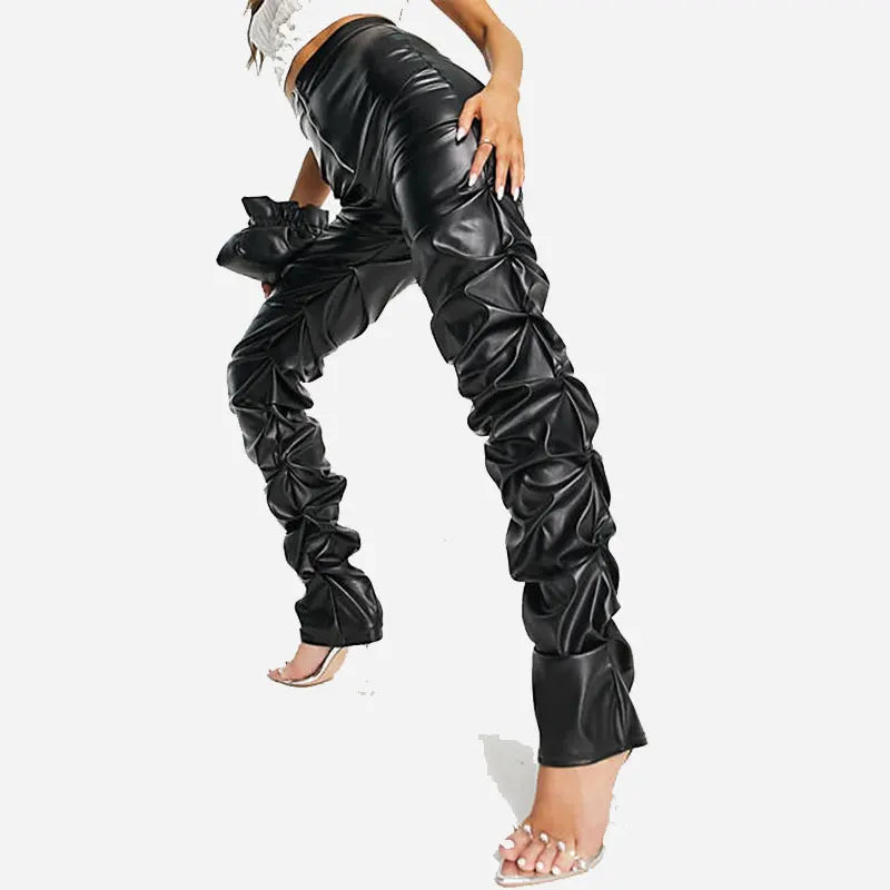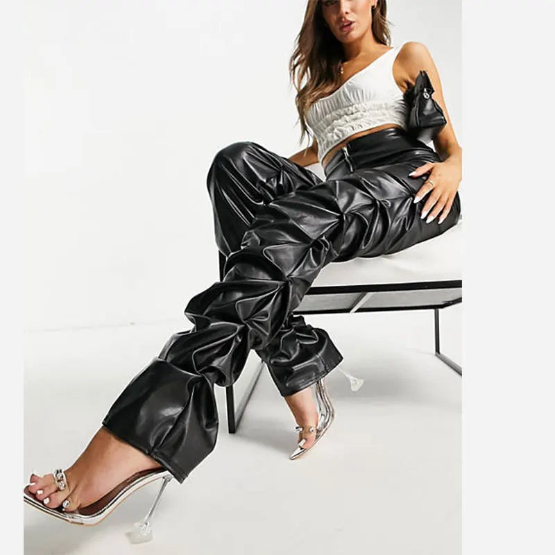 These Retro Chic Loose Ruched Trousers combine a retro aesthetic with a loose and comfortable fit. The ruched detailing adds a touch of elegance to the trendy design. Perfect for those seeking a stylish yet comfortable look.