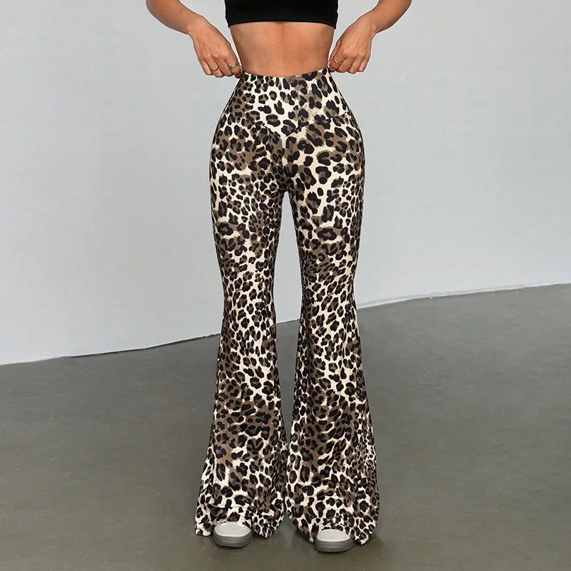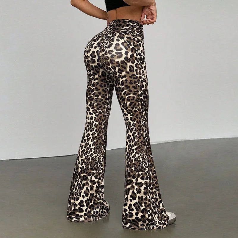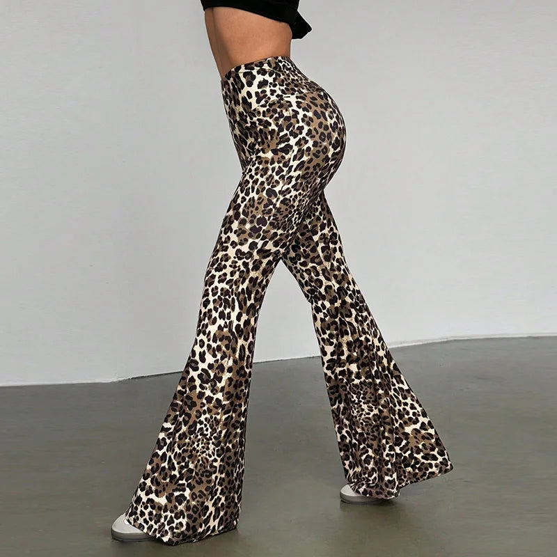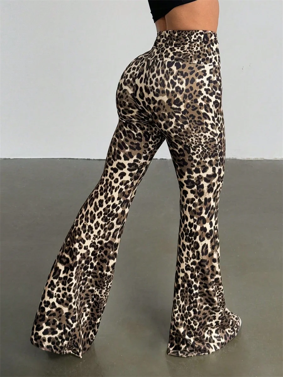 Trend4us Bold Leopard Print High-Waisted Flare Pants