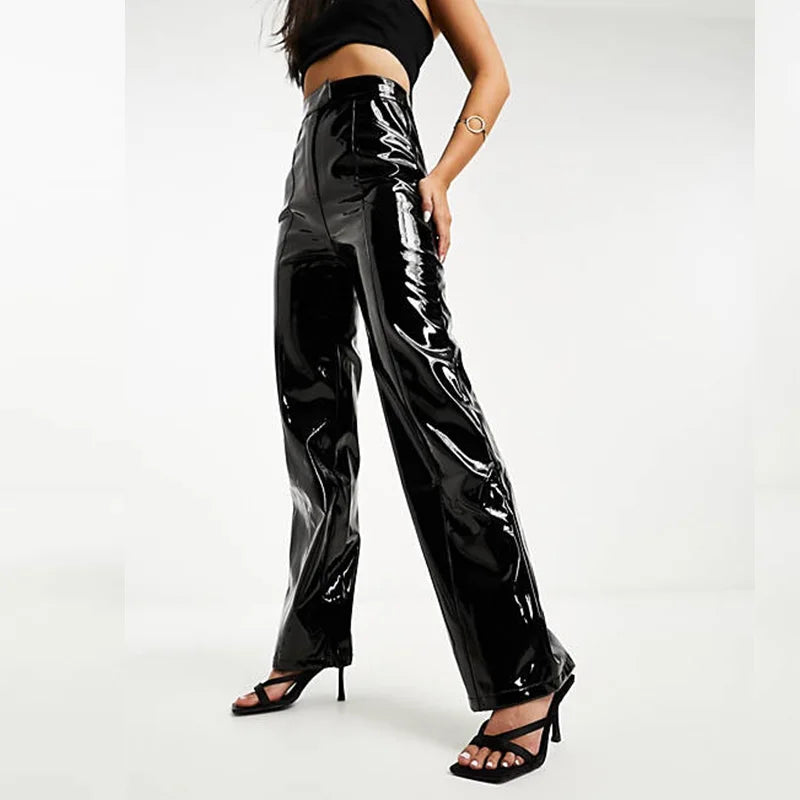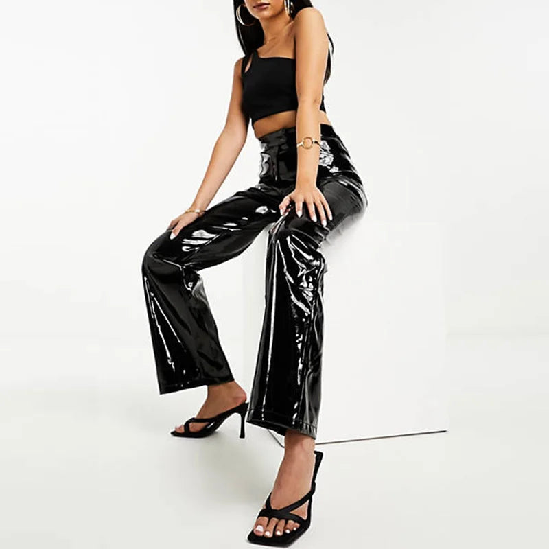 Trend4us Glossy Edge High-Waisted Vinyl Pants