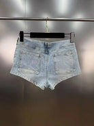 The light-wash denim with raw-inspired finishing gives them a vintage feel, while the structured design and back pockets keep them practical. Perfectly versatile, they can be styled with crop tops, bodysuits, or oversized tees for effortless chic looks—whether at festivals, city strolls, or weekend outings.