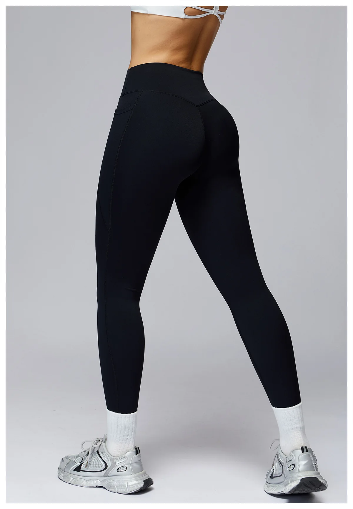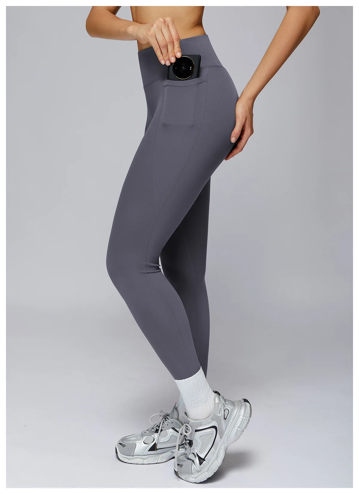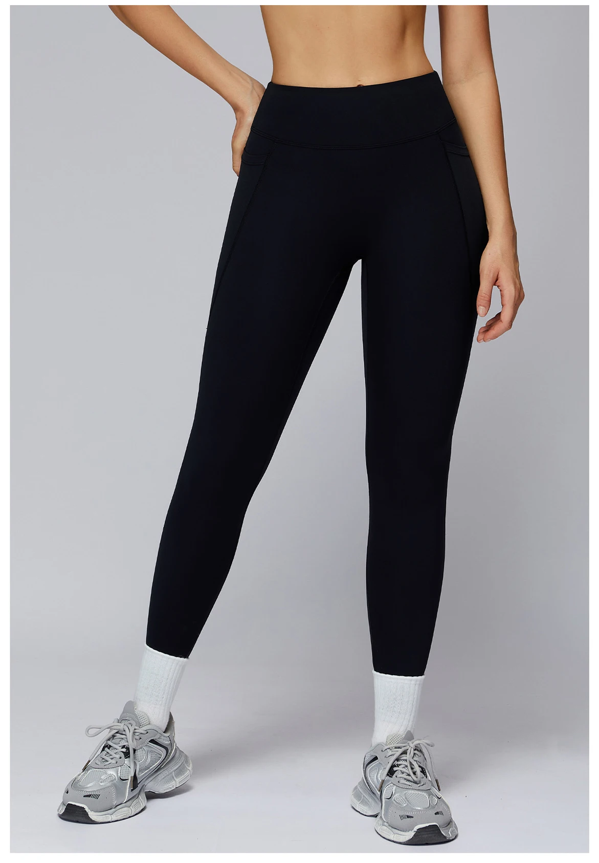 Designed with a supportive high-rise waistband, these leggings contour your shape and stay perfectly in place during every movement. The sculpting compression fabric offers a smooth, flattering fit that hugs your curves while maintaining flexibility and breathability. Functional side pockets let you carry your essentials hands-free — perfect for phones, keys, or cards.